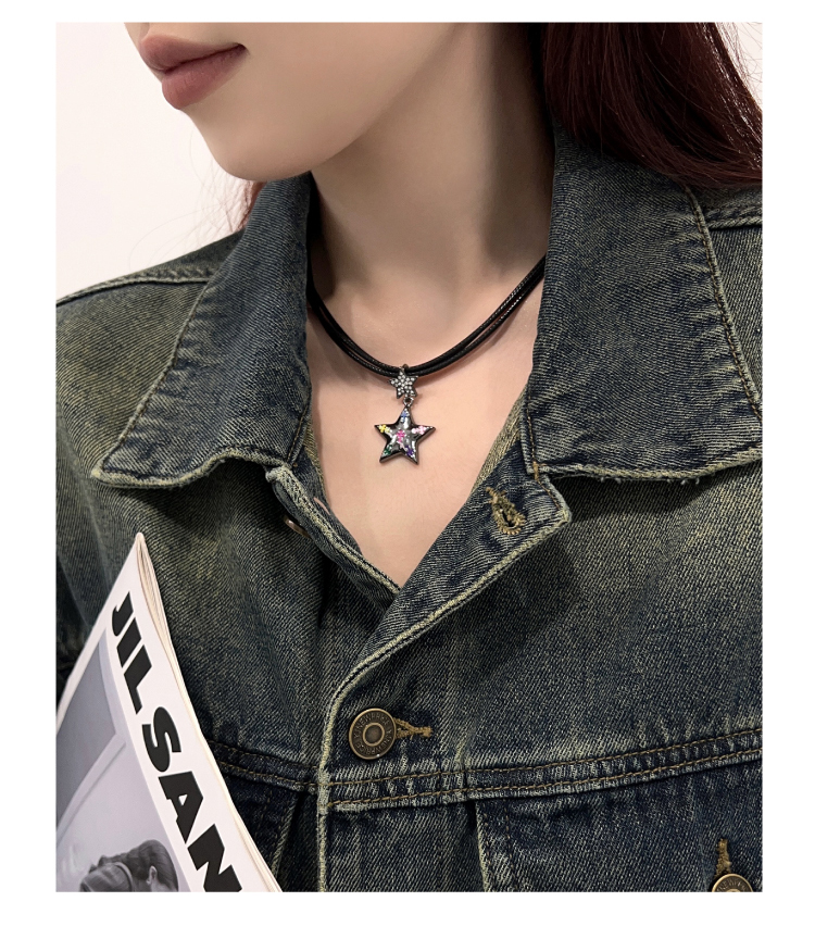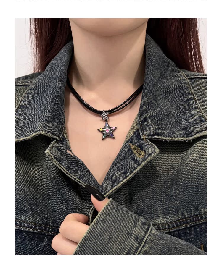 KANSAI黑皮繩五角星星項鏈女小眾甜酷風y2k簡約韓版個性新款配飾