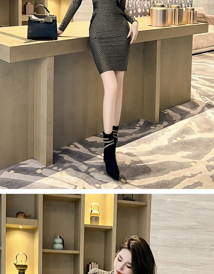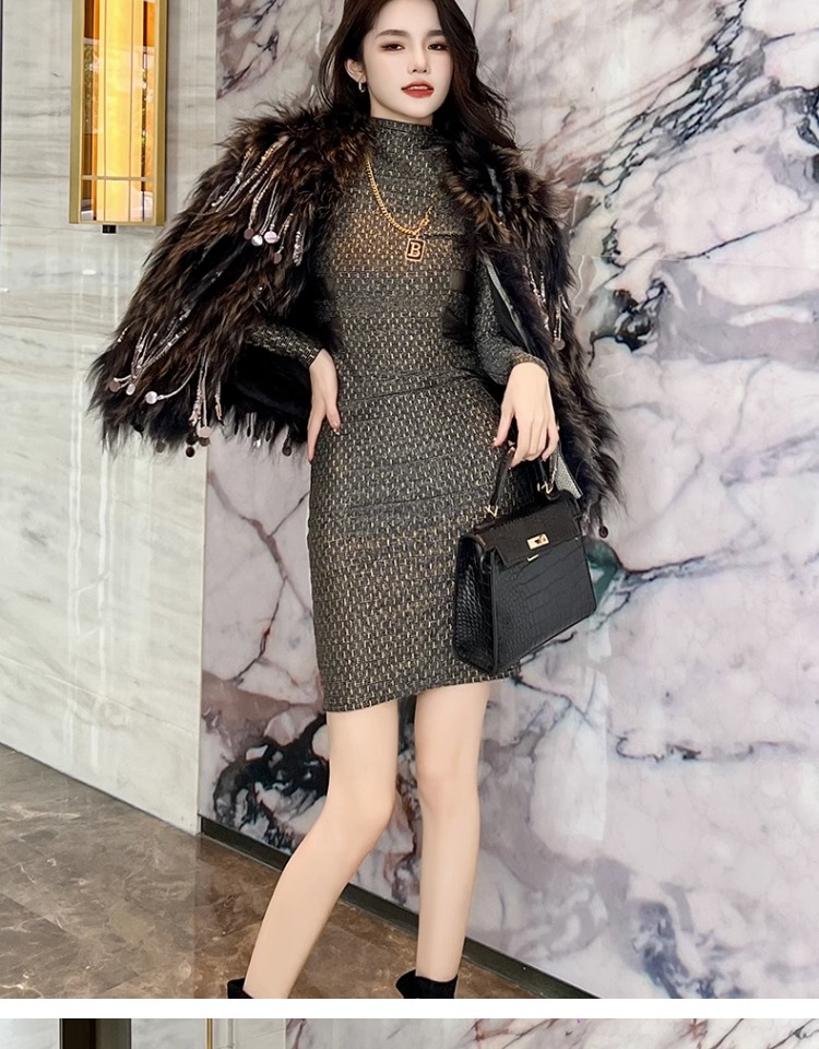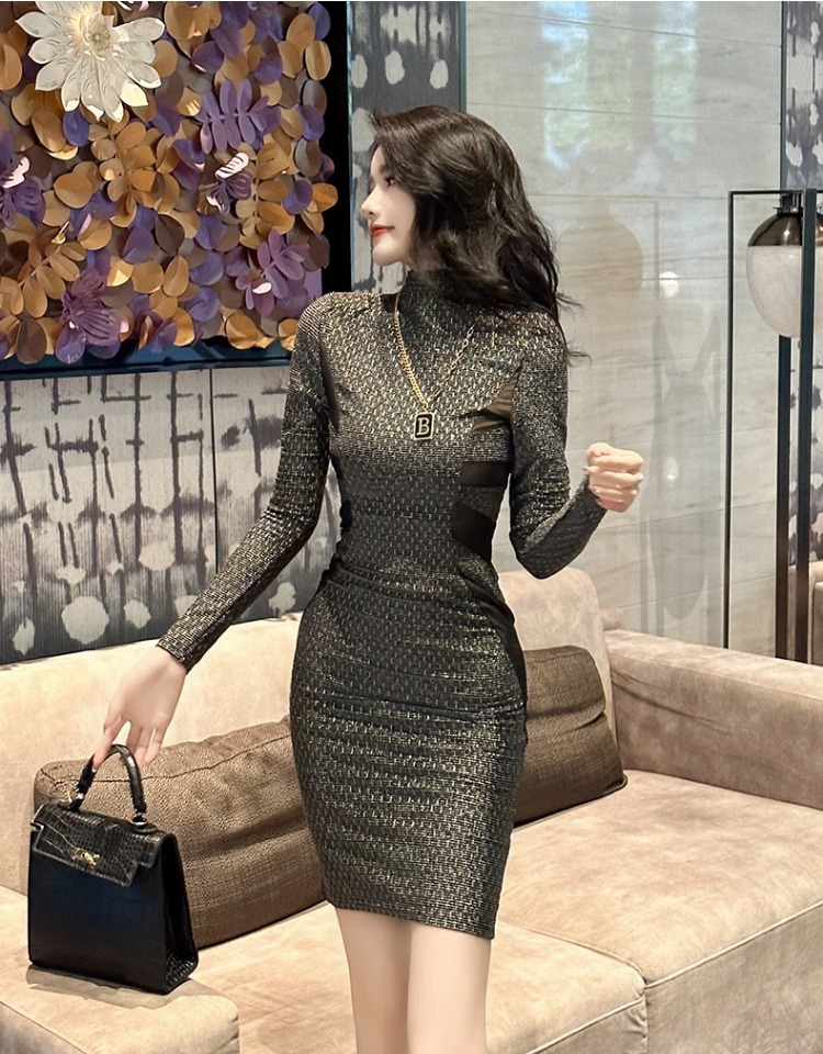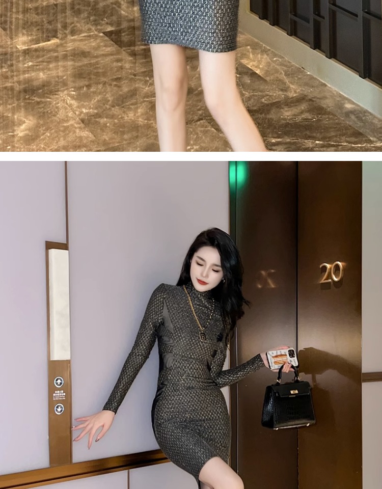 初秋新款氣質小香風連衣裙顯身材顯瘦復古收腰包臀半高領針織裙子