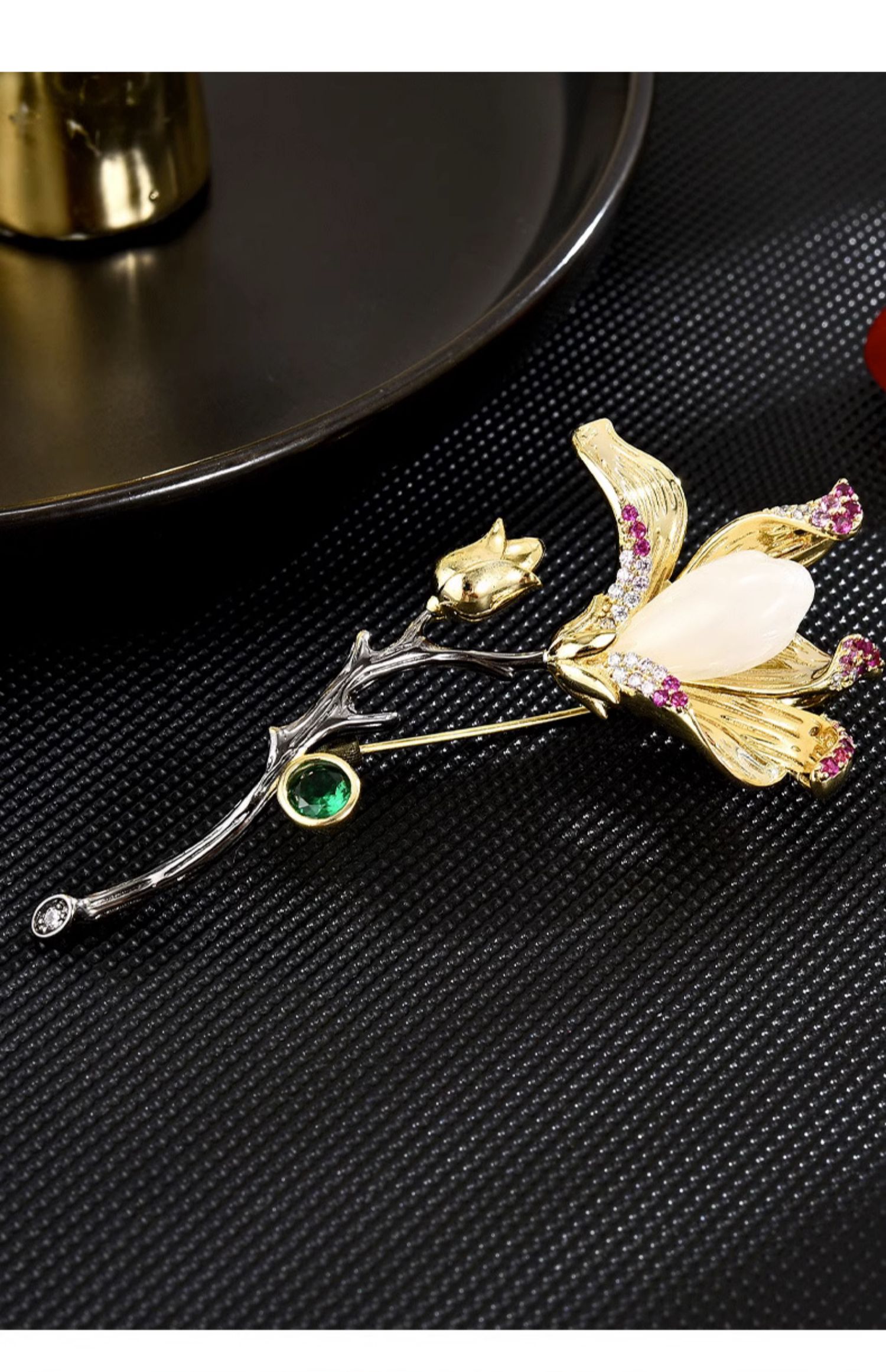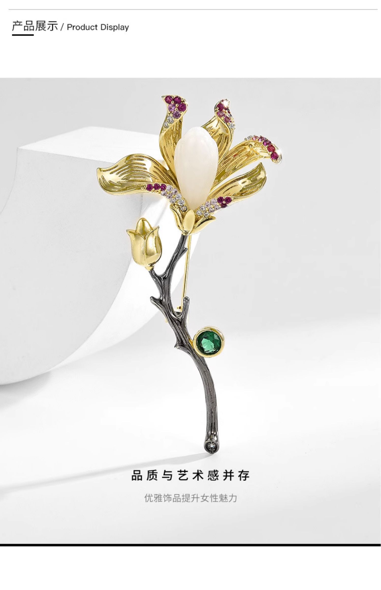 中國風玉蘭花胸針高檔女和田玉胸花高級感奢華氣質高端珍珠別針