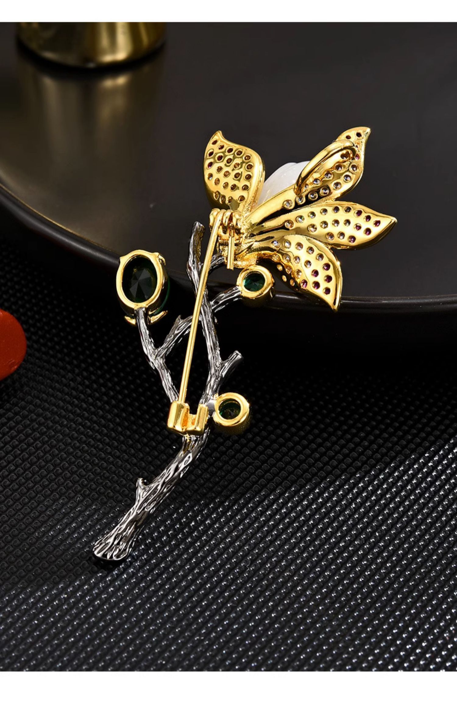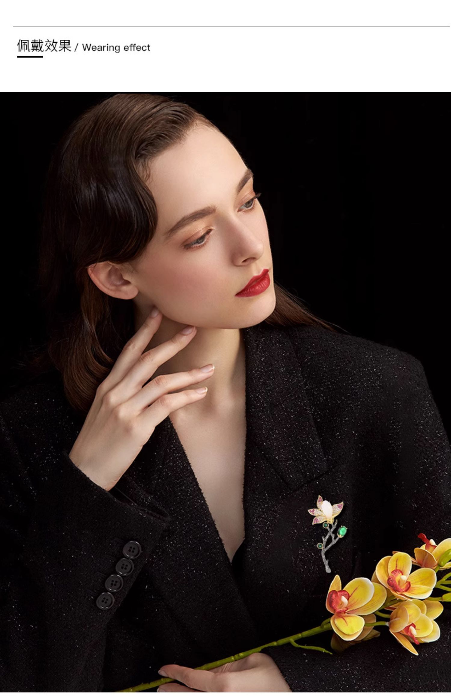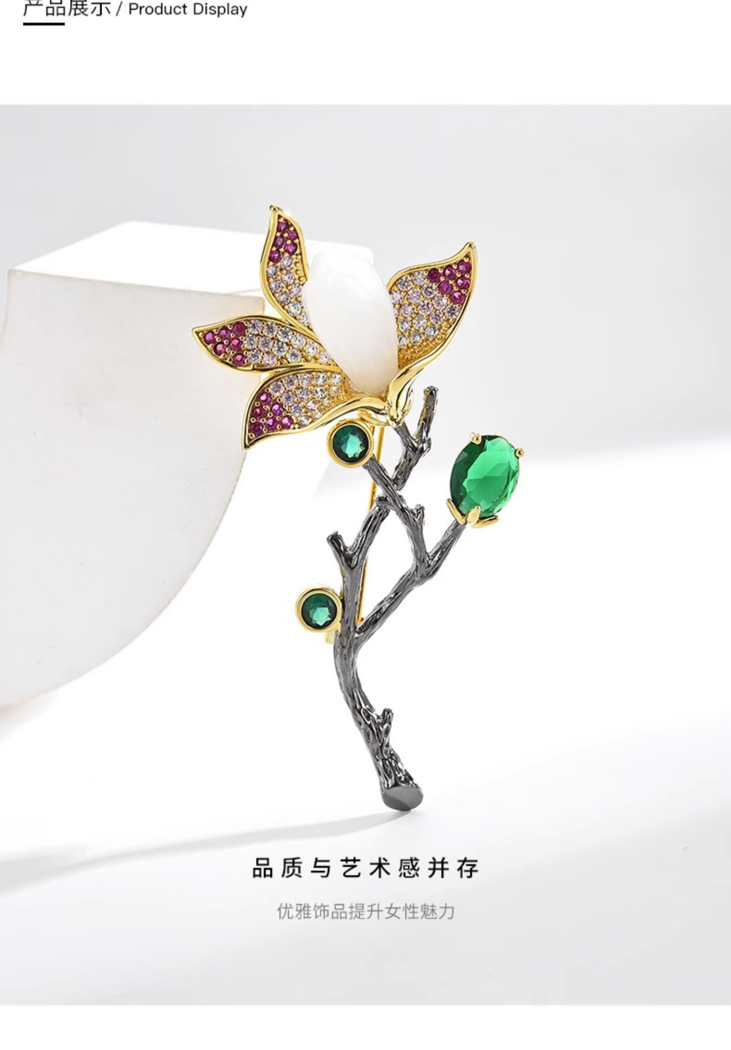 秋冬款和田玉胸花胸針高檔女士套裝高級感禮物西裝禮服別針配飾品