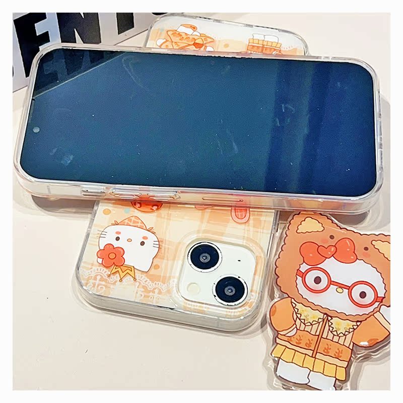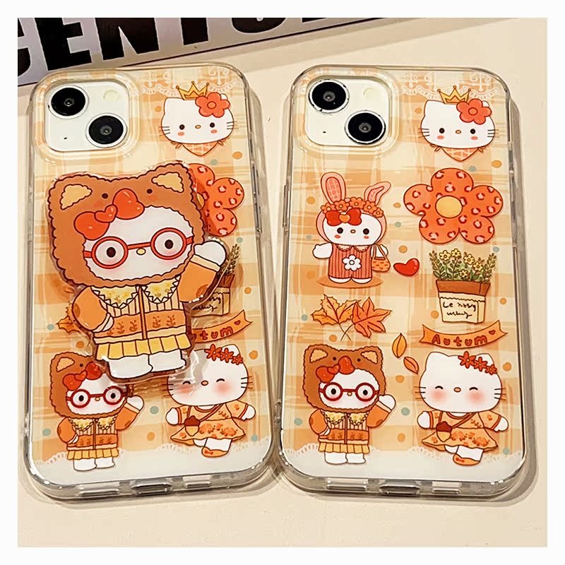 黃色可旋轉Kitty貓餅干支架適用蘋果15promax手機殼iphone14女款15pro新款13可愛卡通少女爆12硬殼防摔11雙層