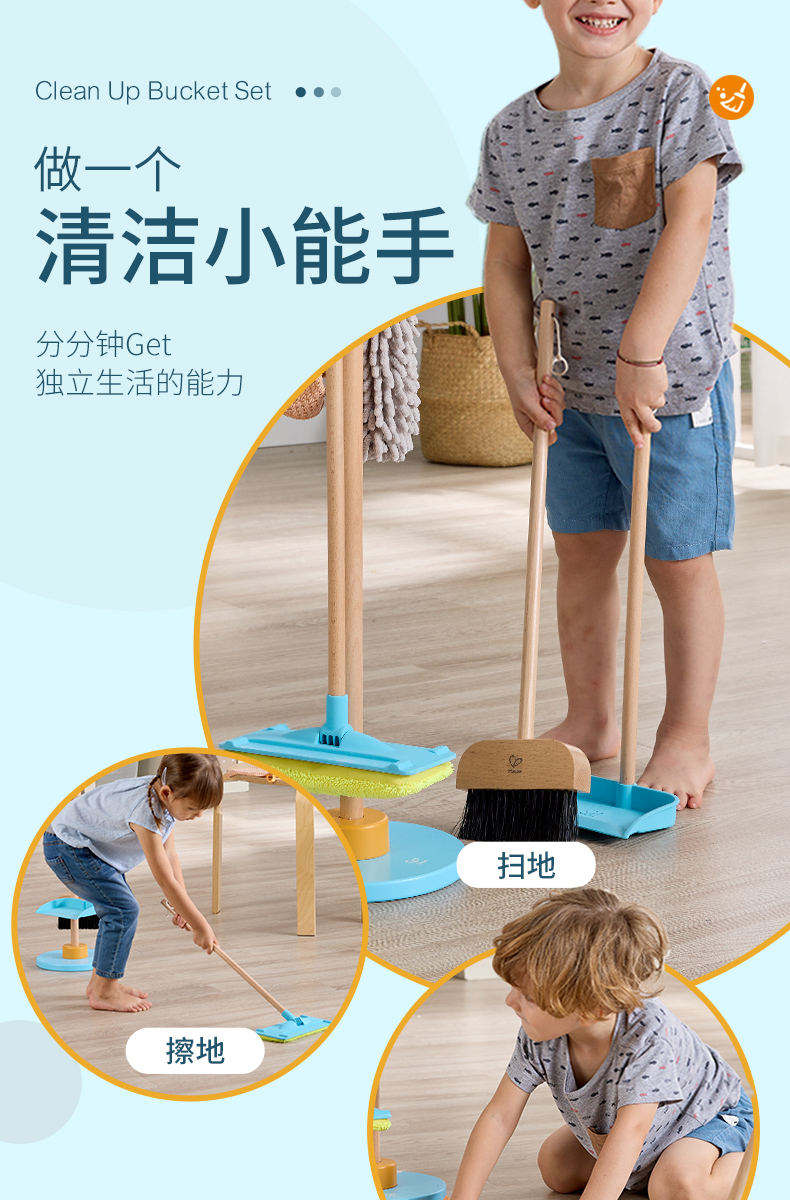 Hape兒童掃地玩具清潔衛生套裝掃把簸箕組合仿真寶寶過家家男女孩
