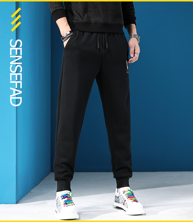 南極人中青年運動休閑褲男秋冬加絨加厚男士保暖衛褲潮流束腳褲子