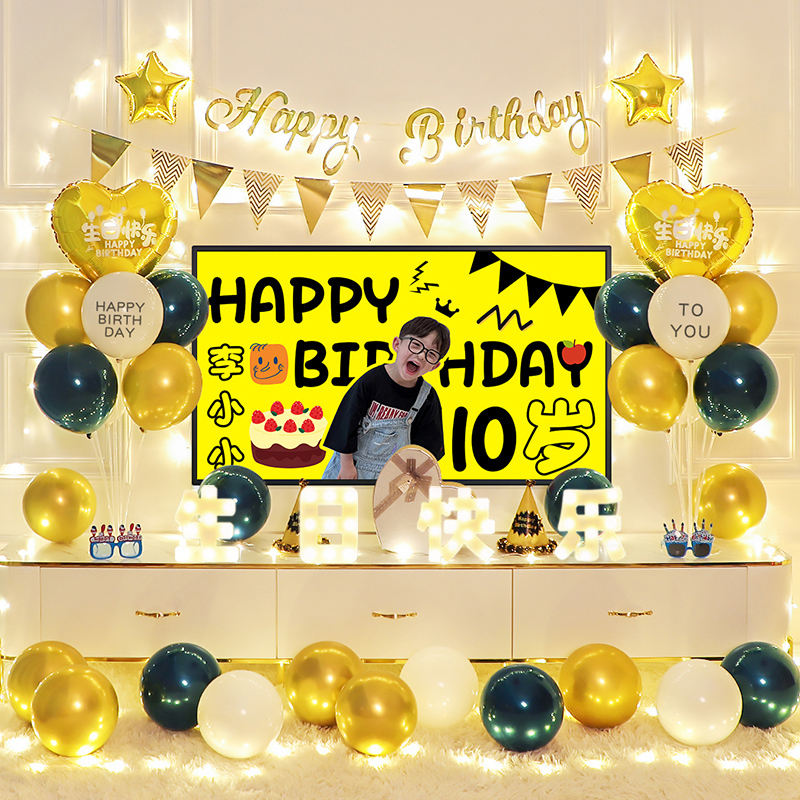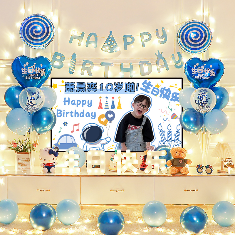 男孩生日快樂裝飾場景布置兒童寶寶10周歲氣球派對電視投屏背景墻