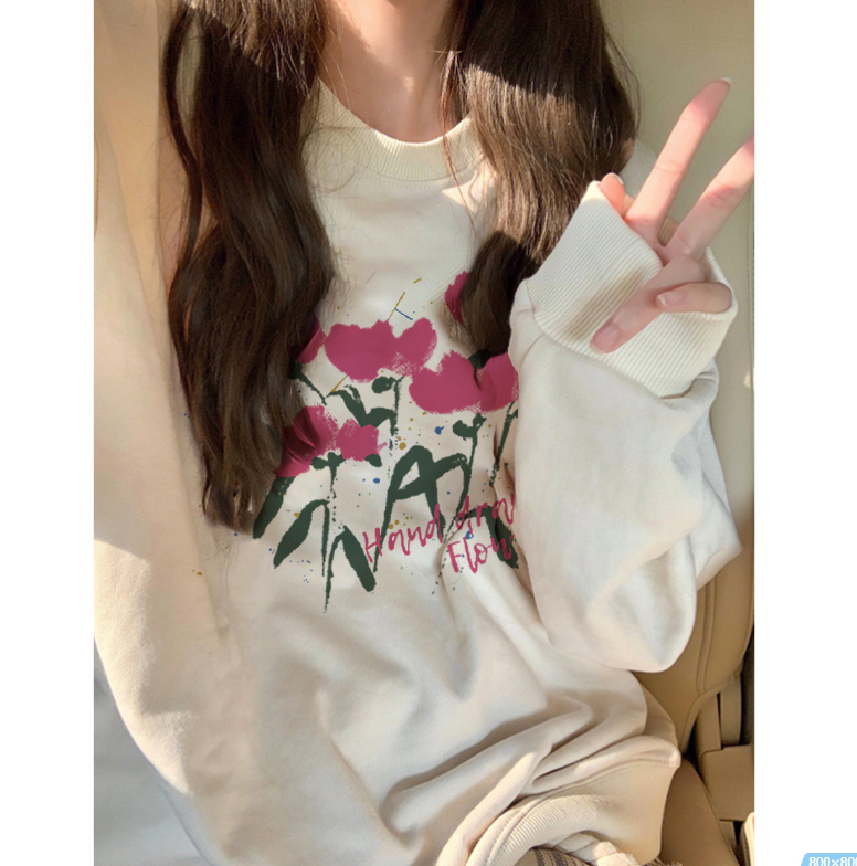 美式復古圓領衛衣女2023新款加絨加厚無帽長袖oversize慵懶風上衣