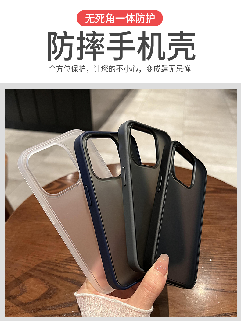 umj【防滑邊框】iphone15/15pro手機殼14pro膚感磨砂黑色適用蘋果13proMax簡約高級12新款全包防摔保護套男女