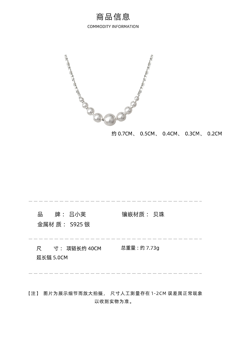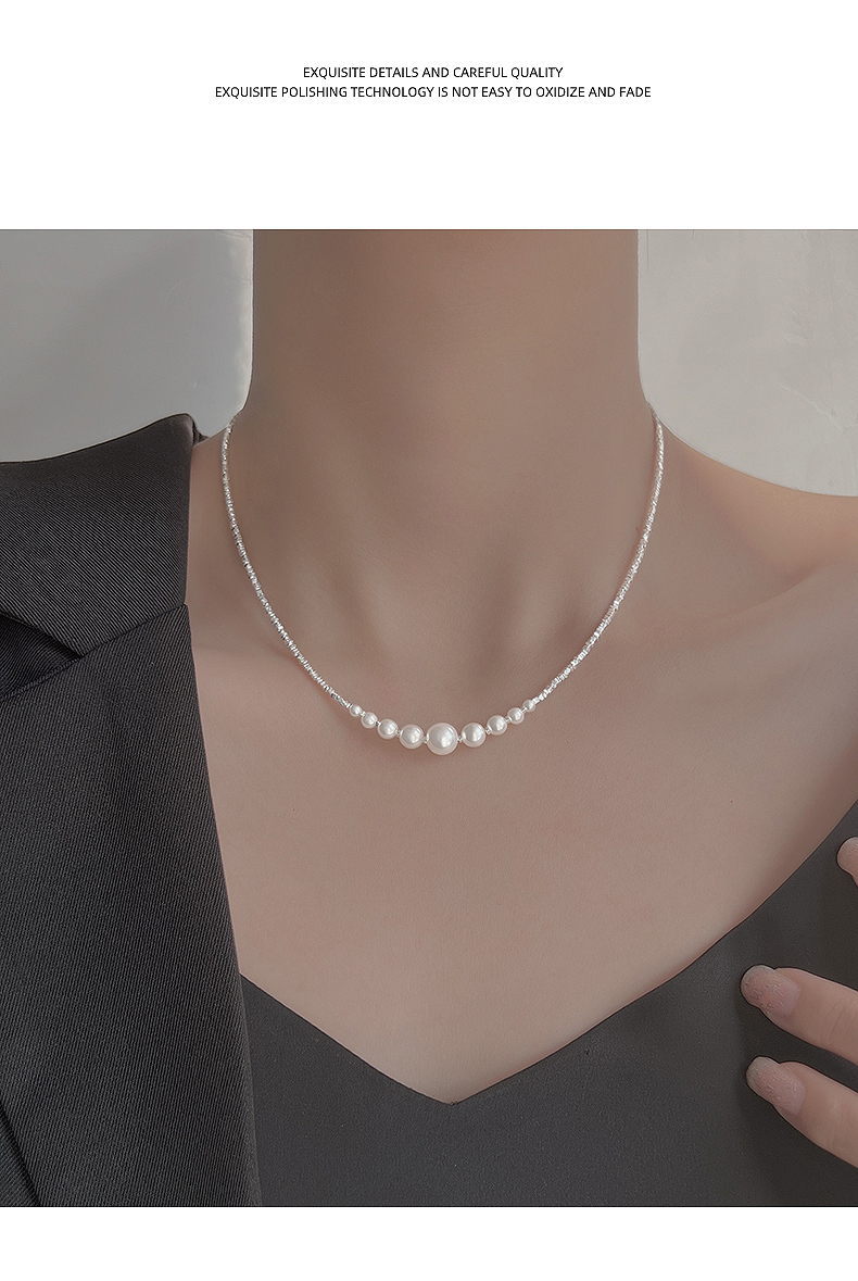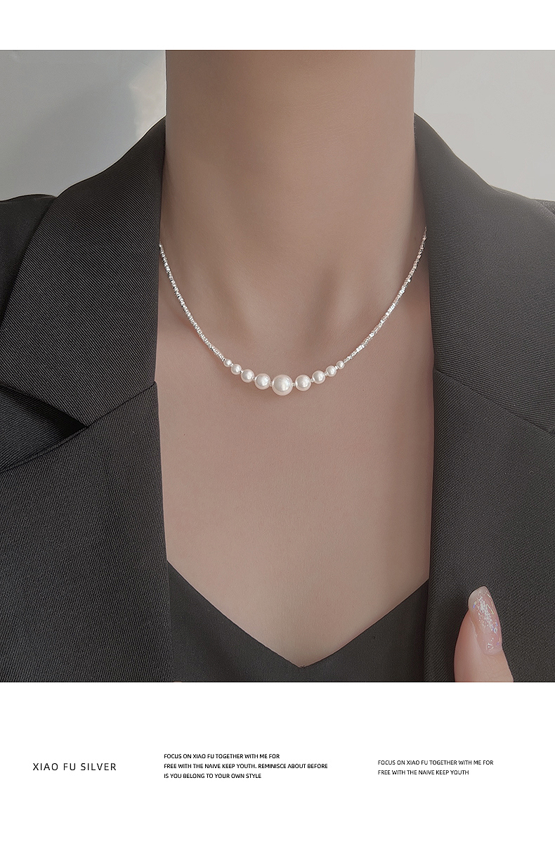 925純銀碎銀珍珠項鏈女漸變微笑鎖骨鏈爆款夏輕奢小眾高級感頸鏈