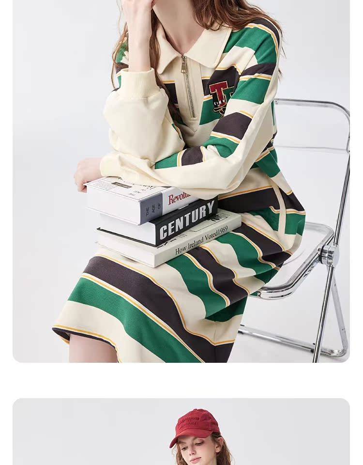 【翻轉卡片】a02學院風連衣裙2023秋季假兩件撞色減齡polo連衣裙