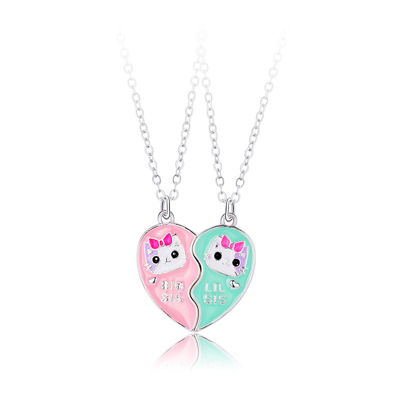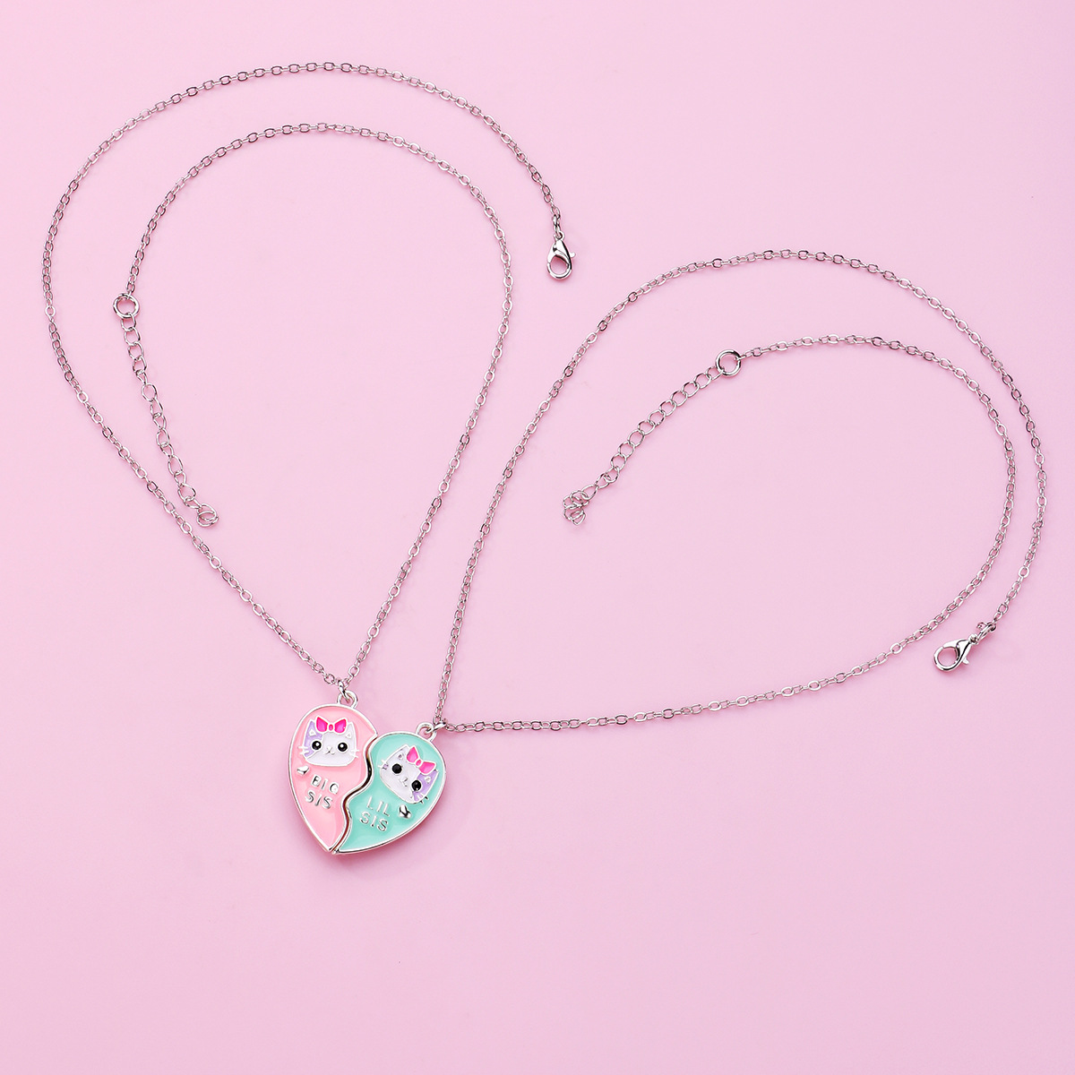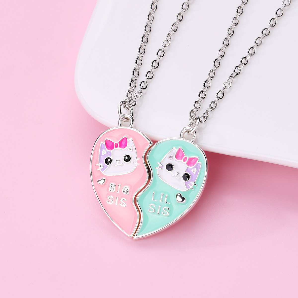 一對兒童項鏈卡通貓咪愛心粉綠磁吸拼接吊墜閨蜜姐妹禮物二人飾品
