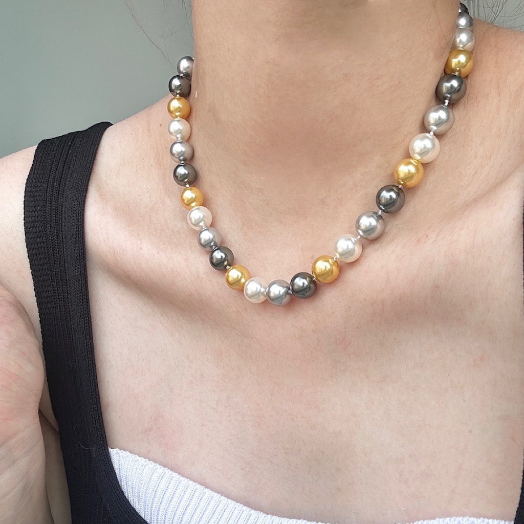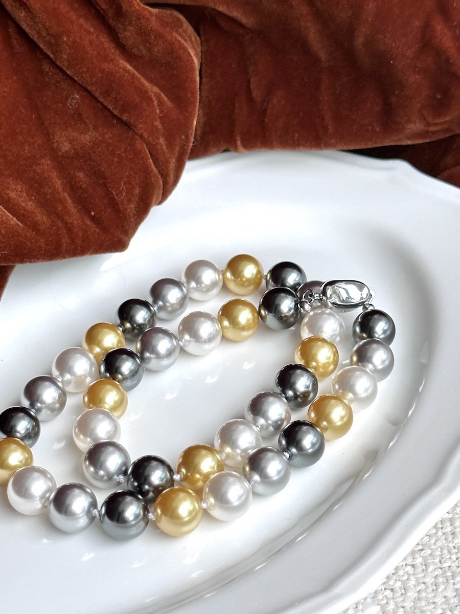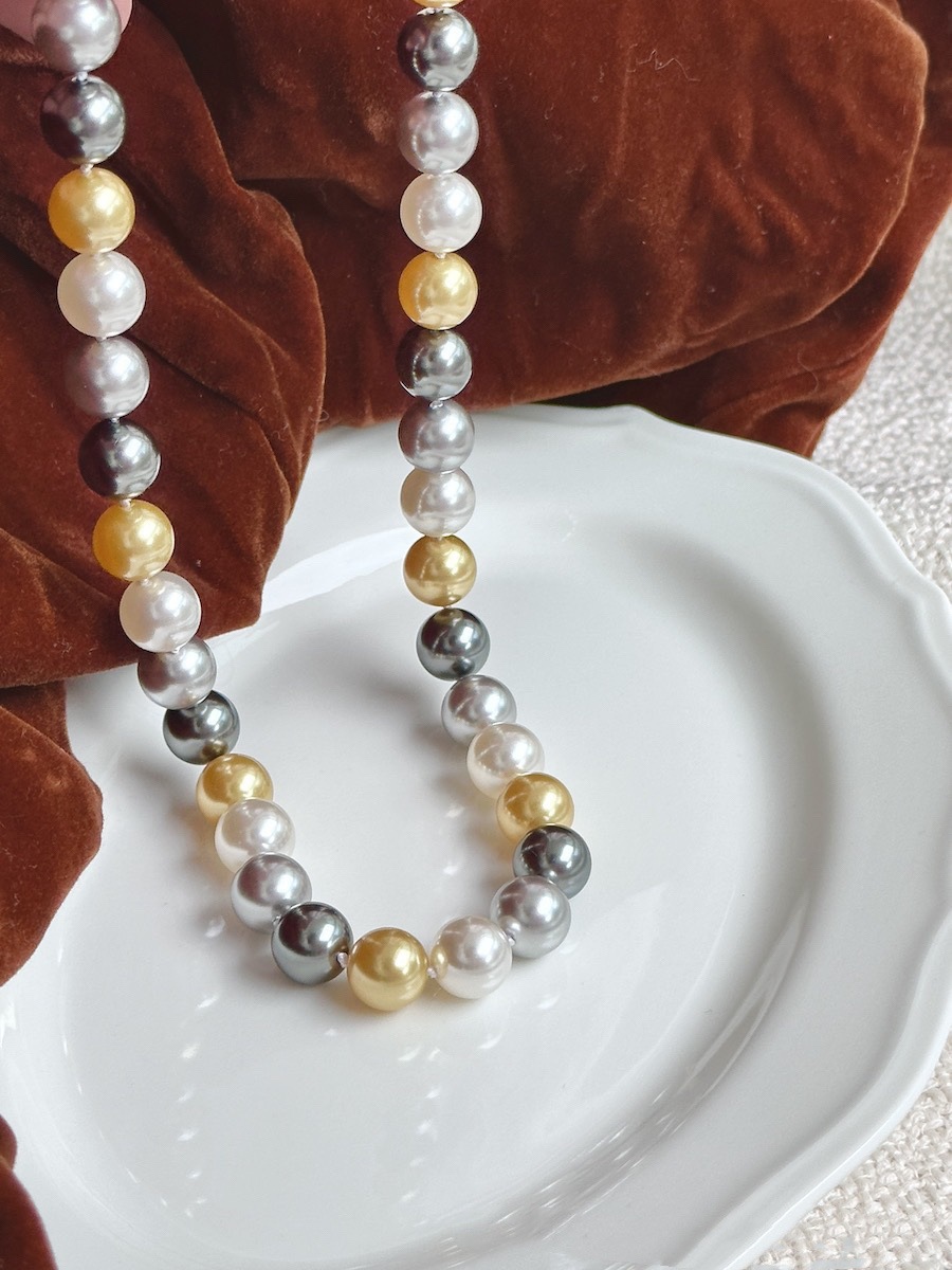 倪妮南洋三兄弟進口仿澳白大溪地四色混彩復古人造1cm珍珠項鏈女