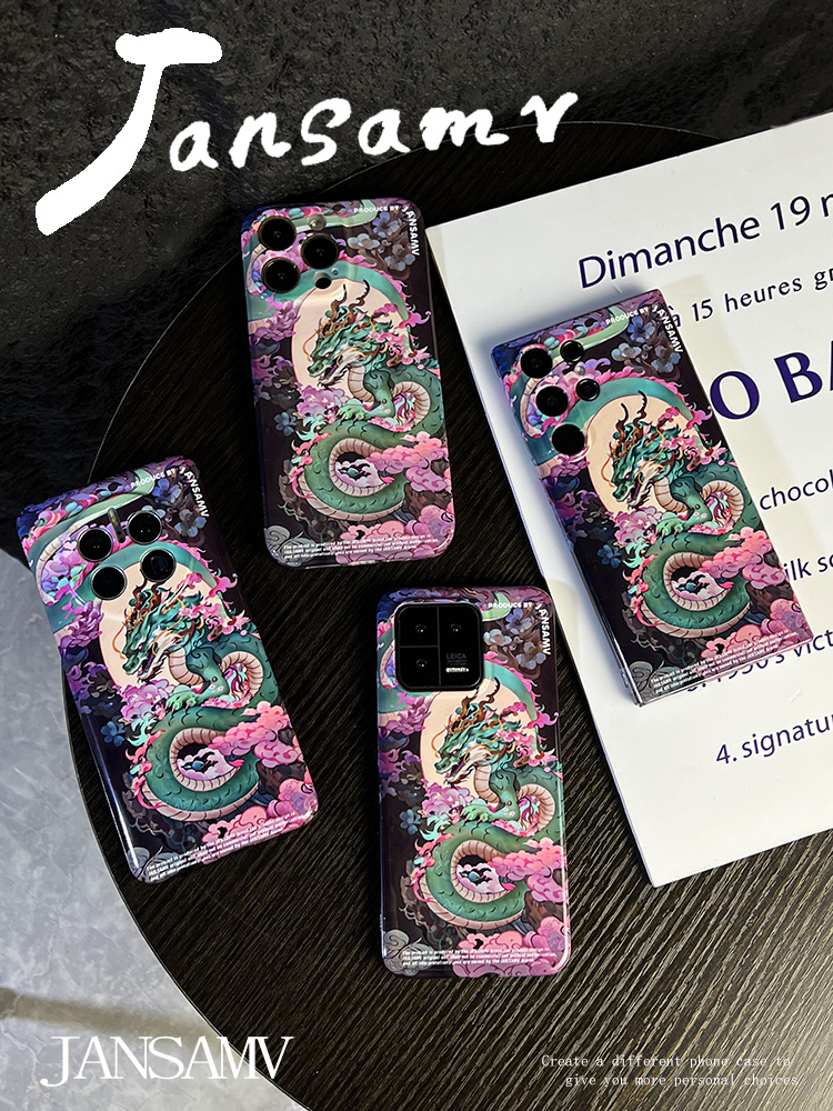 青龍與花適用蘋果15手機殼小米/華為MATE60/p60紅米K60/一加AcePro/11全包邊magic5硬殼13/14三星s23ultra