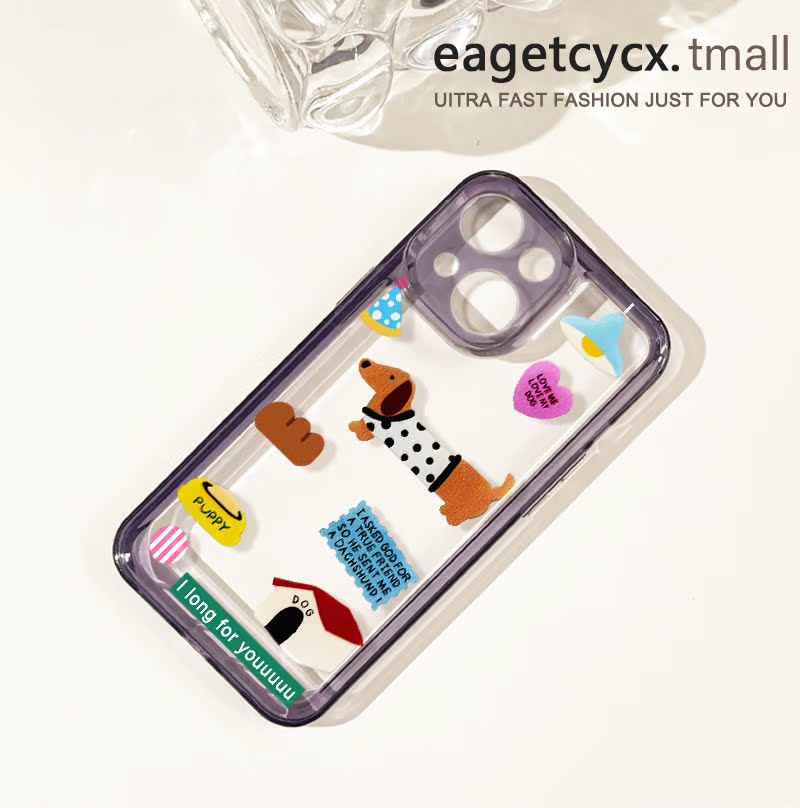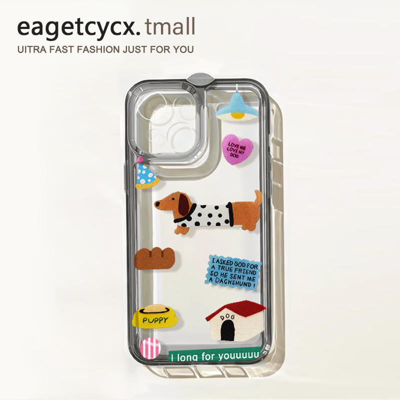情侶高級感臘腸狗適用蘋果14promax手機殼iPhone13透明12新款11pro可愛1plus卡通5亞克力xs女xr全包x防摔硬殼