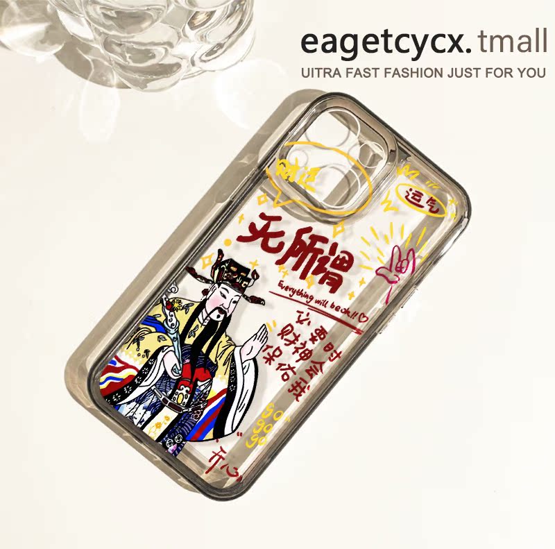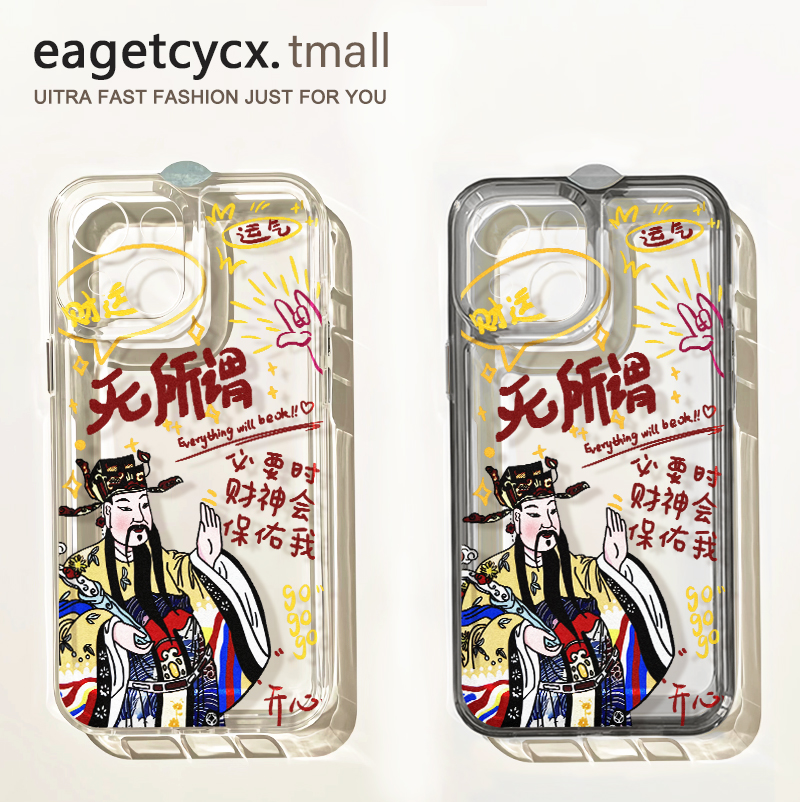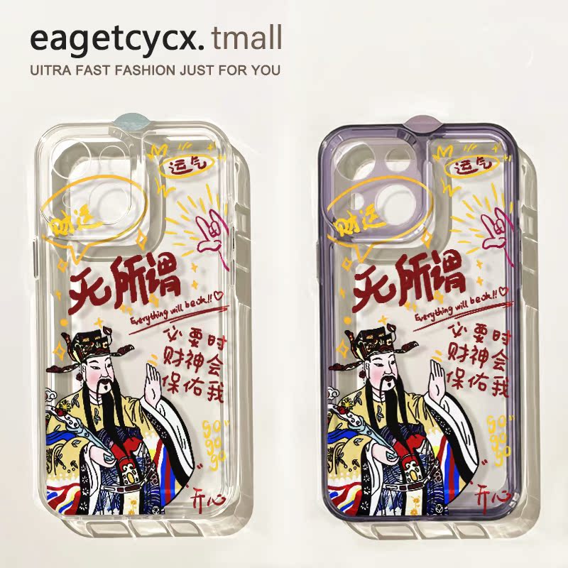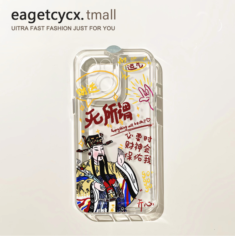 搞怪佛系國風財神爺適用蘋果15promax手機殼iPhone14透明13新款12pro網紅情侶11plus卡通xs女xr全包x防摔硬殼