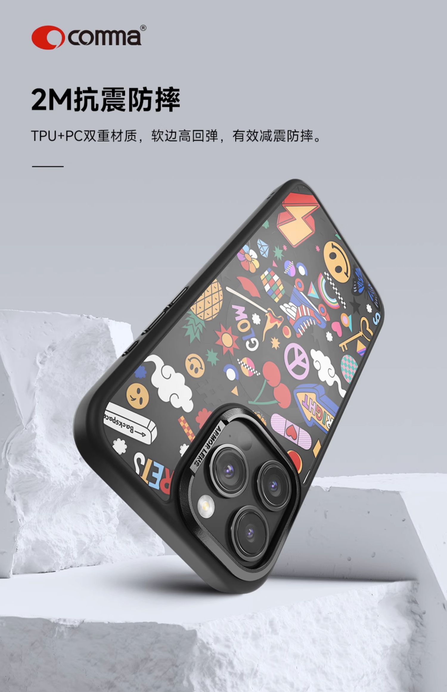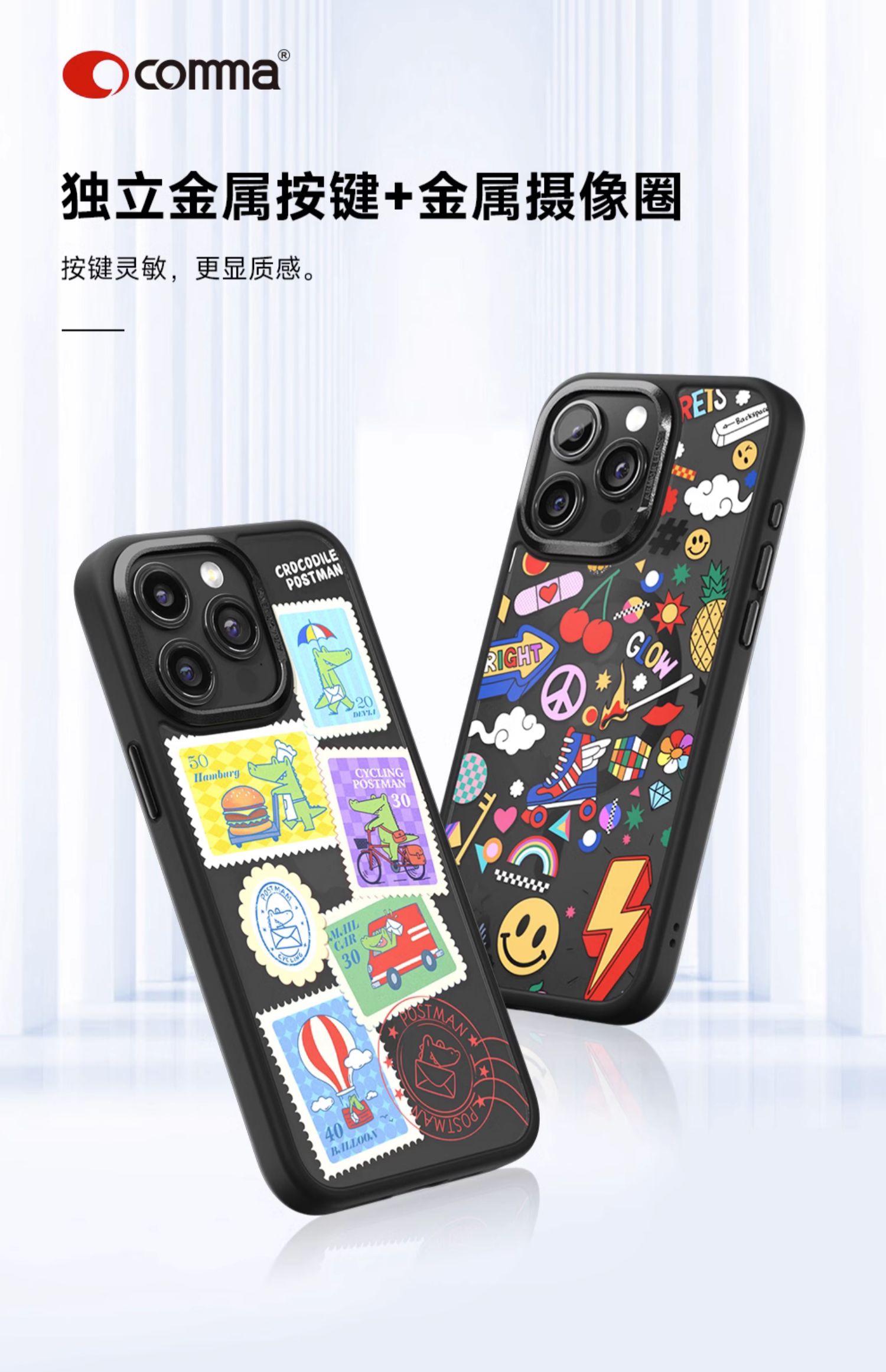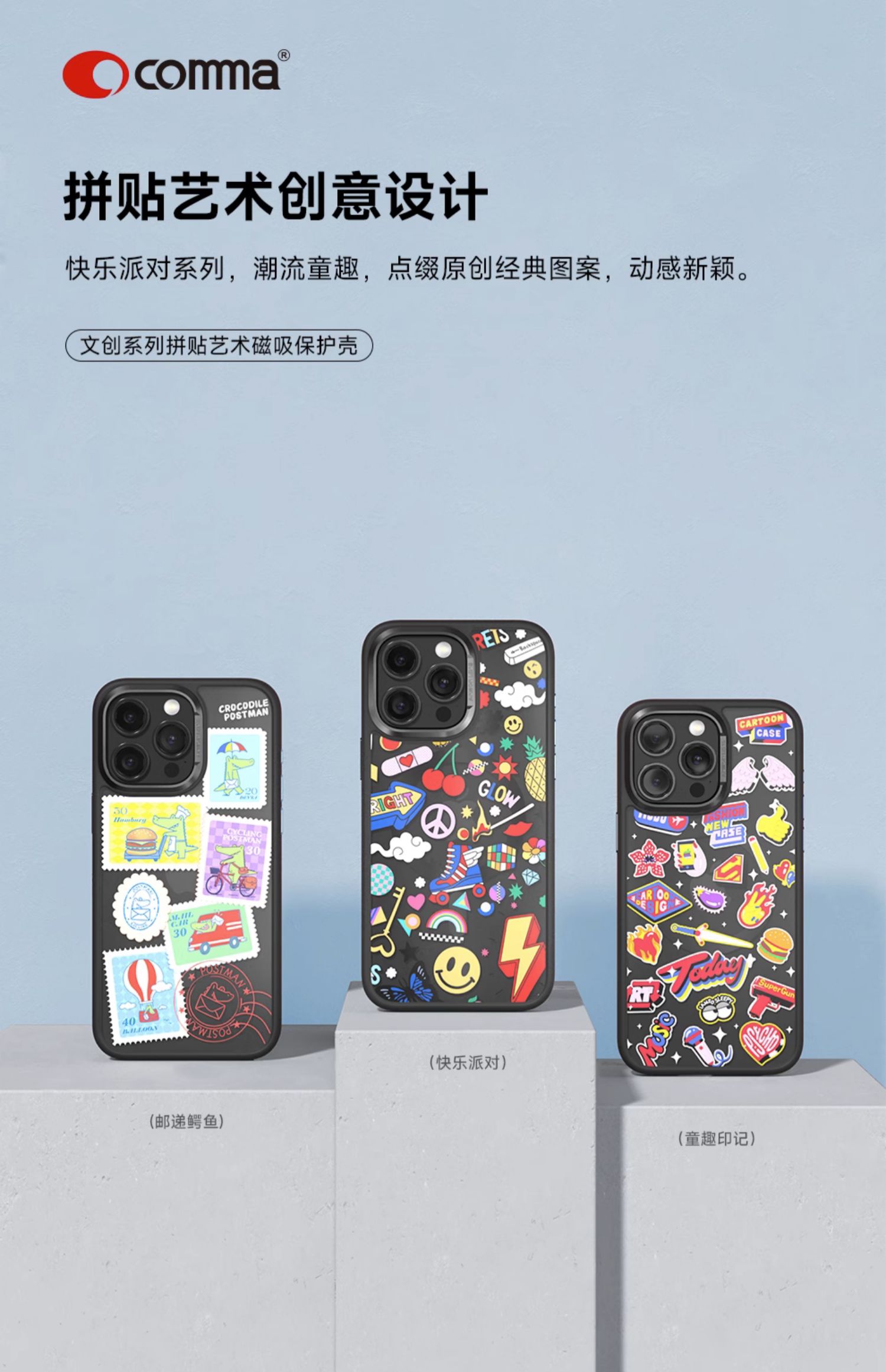 comma珂瑪文創系列適用蘋果15iPhone15promax拼貼磁吸保護殼防摔個性潮流插畫