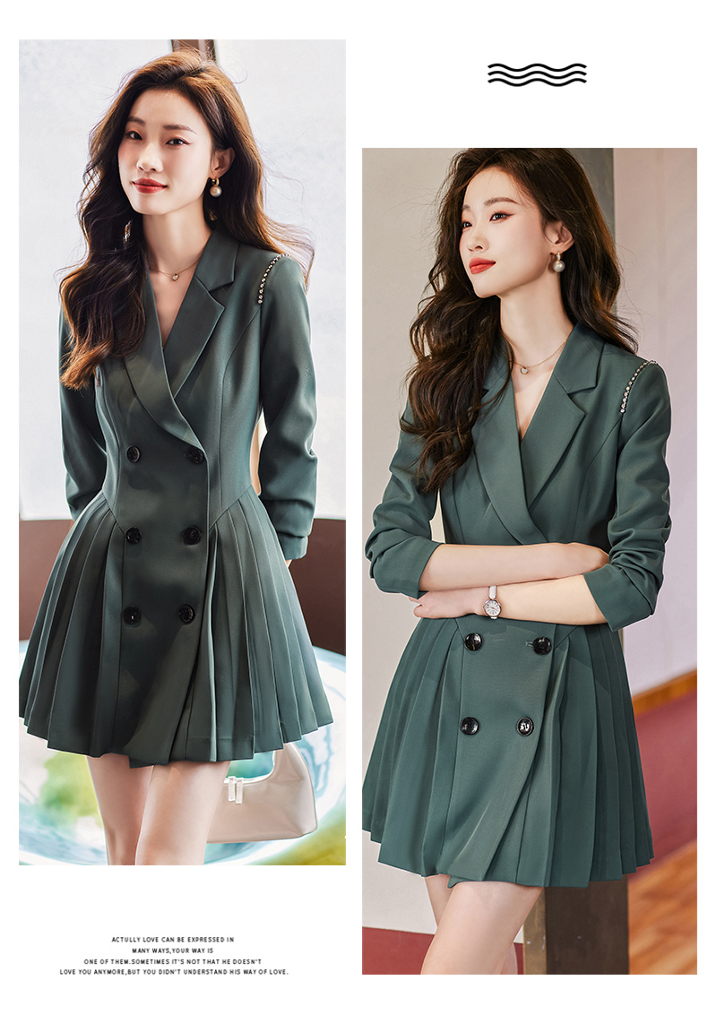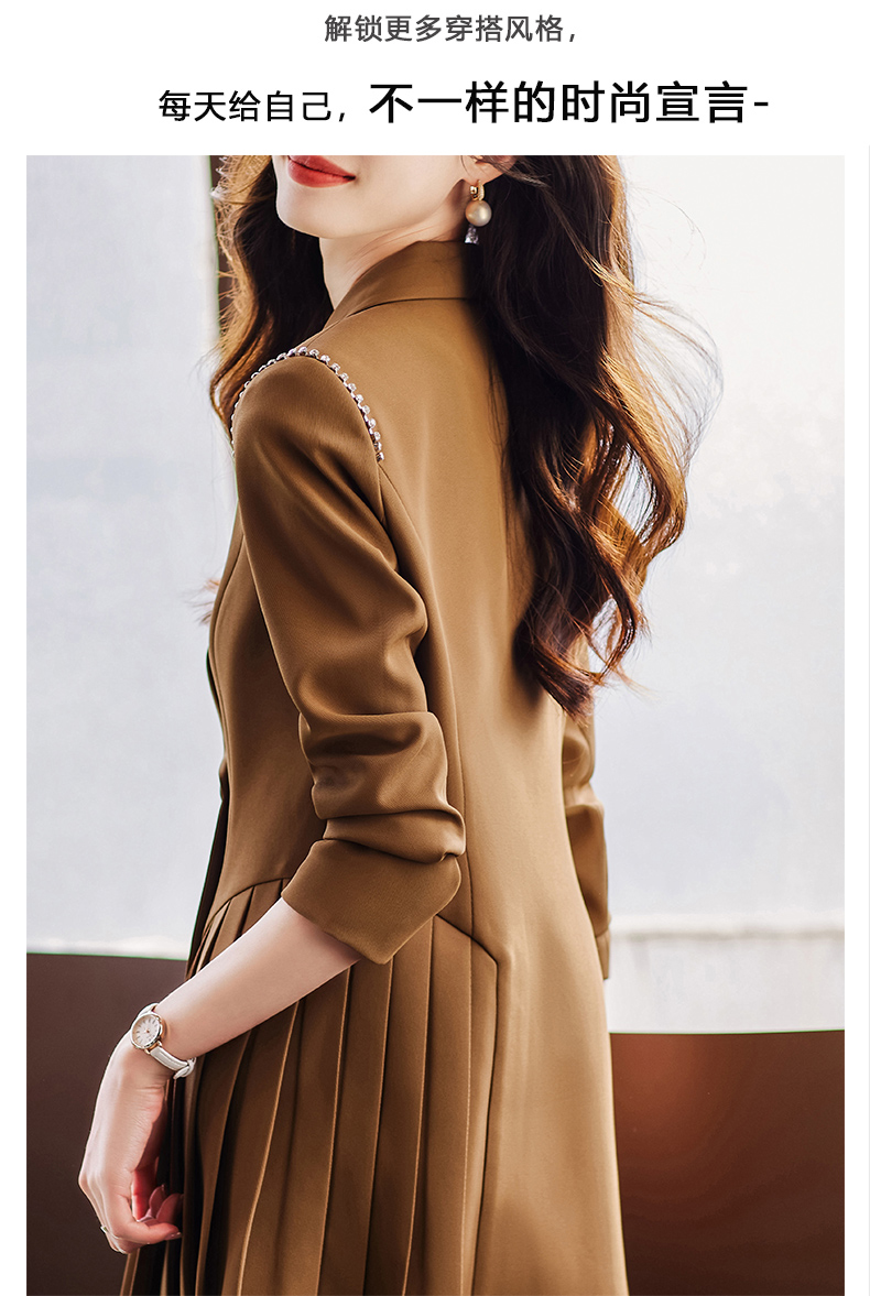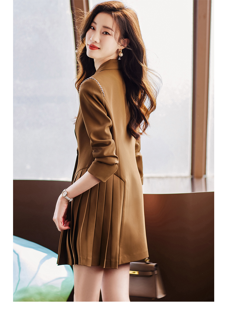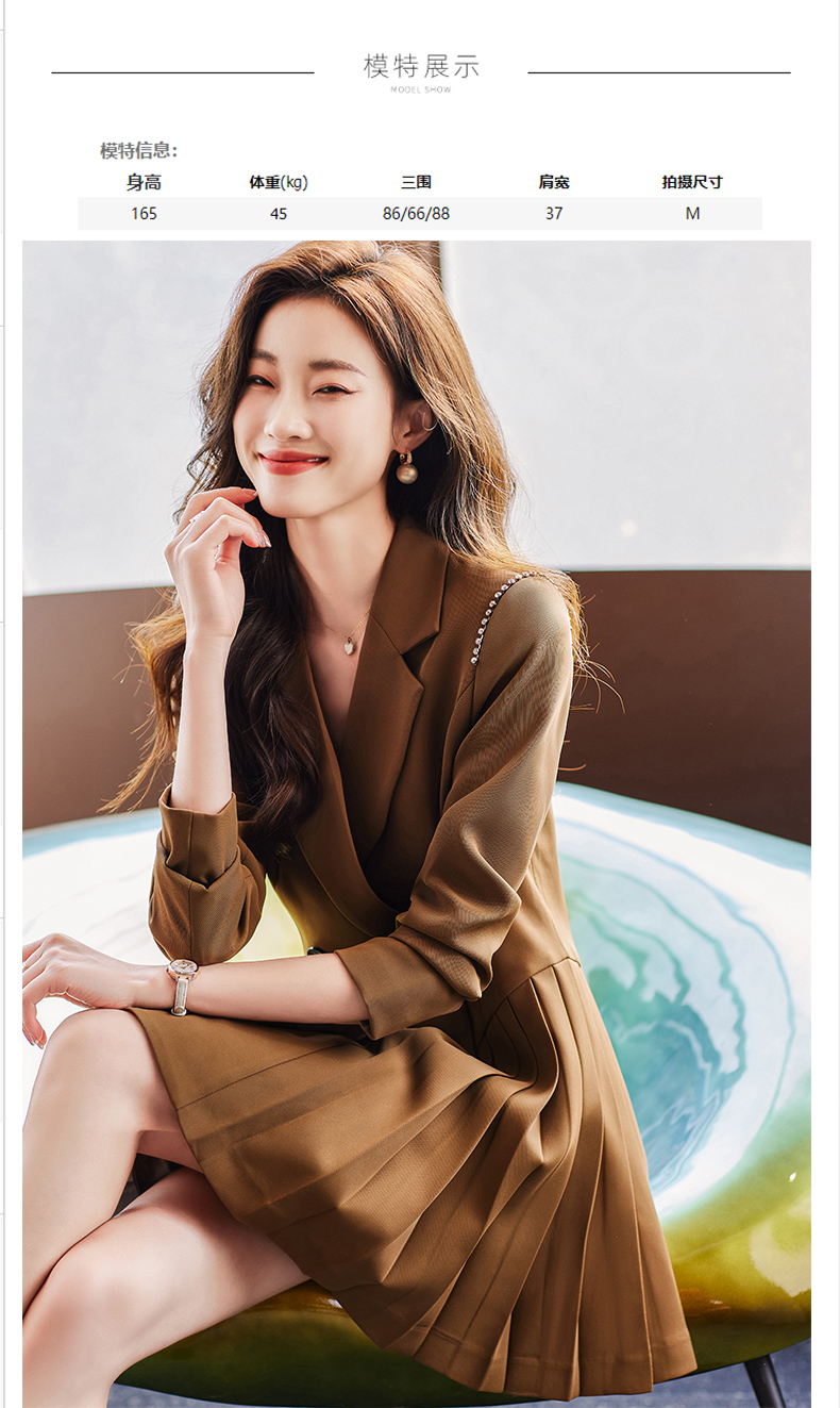 杏色西裝連衣裙女秋冬季美容院前臺工作服酒店經理長袖職業裝裙子