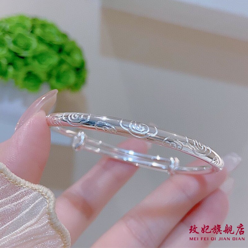 玫妃足銀9999祥云純銀手鐲小眾簡約百搭輕奢時尚手環送女友生日