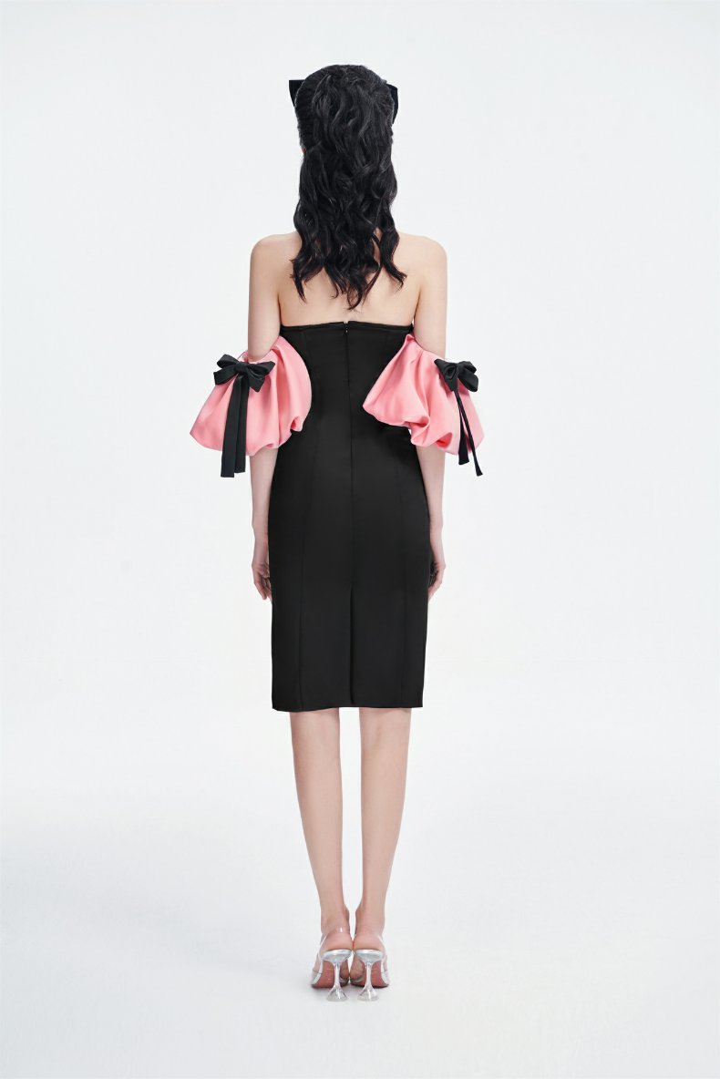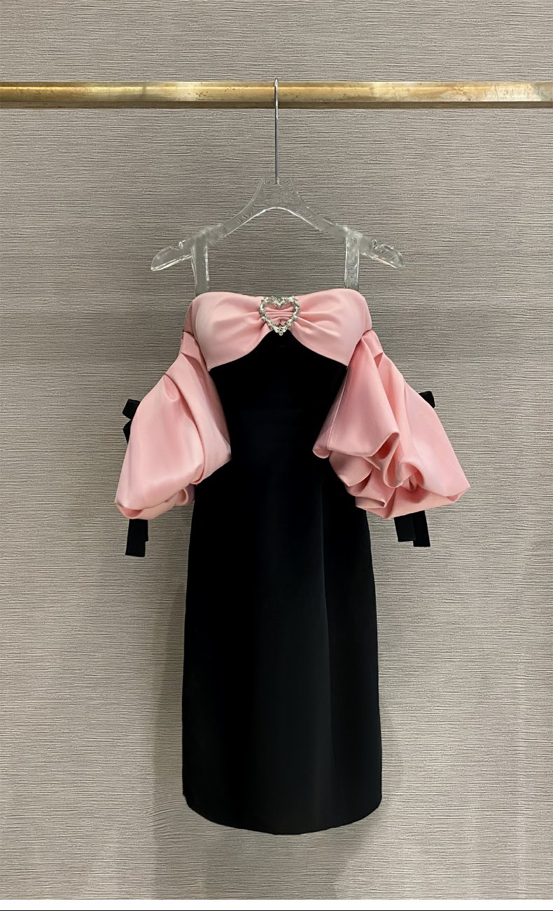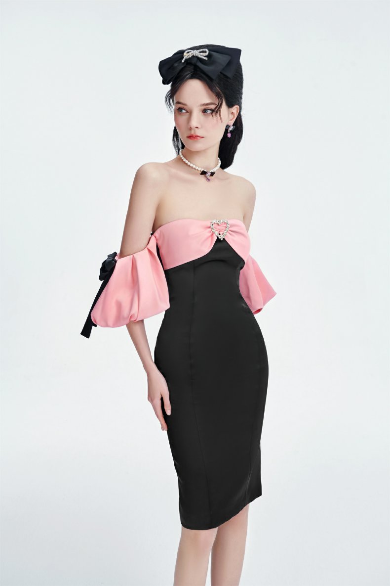 Rose Verge2023夏季新品 粉色拼色抹胸連衣裙 高級百搭 木蘭
