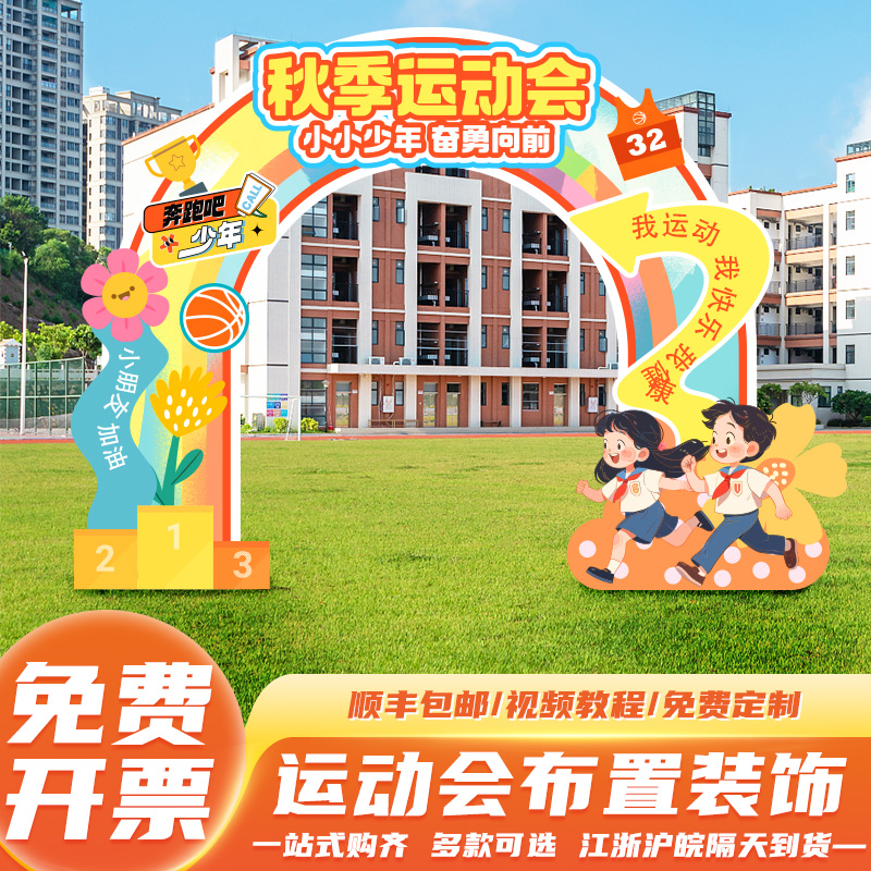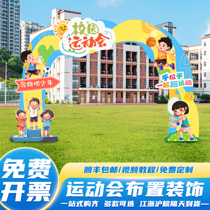 趣味運動會主題氛圍道具布置裝飾小學秋季拱門拍照相框背景墻kt板