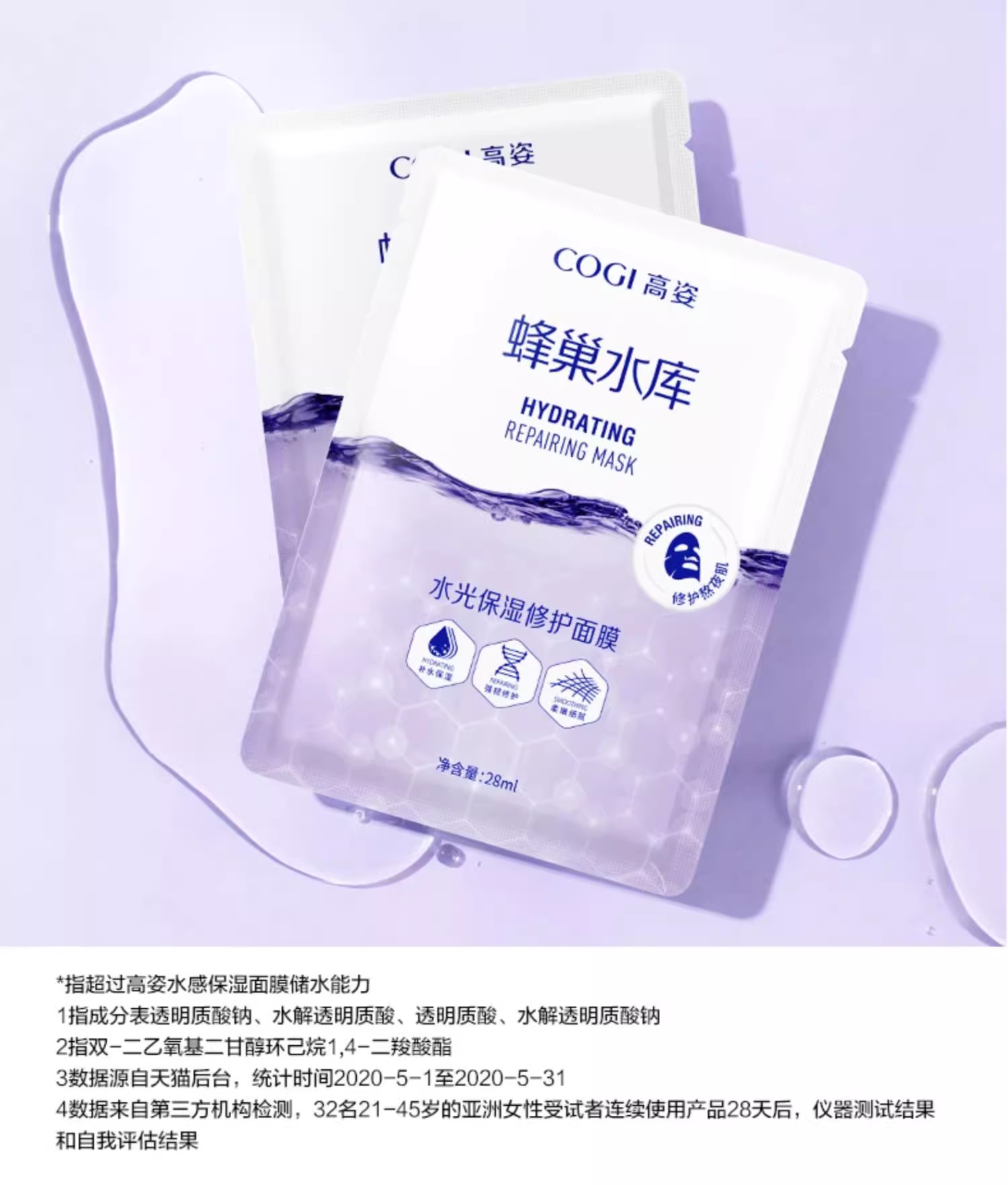 高姿面膜女蜂巢修護補水保濕酵母蝦青素修護熬夜肌官方旗艦店正品