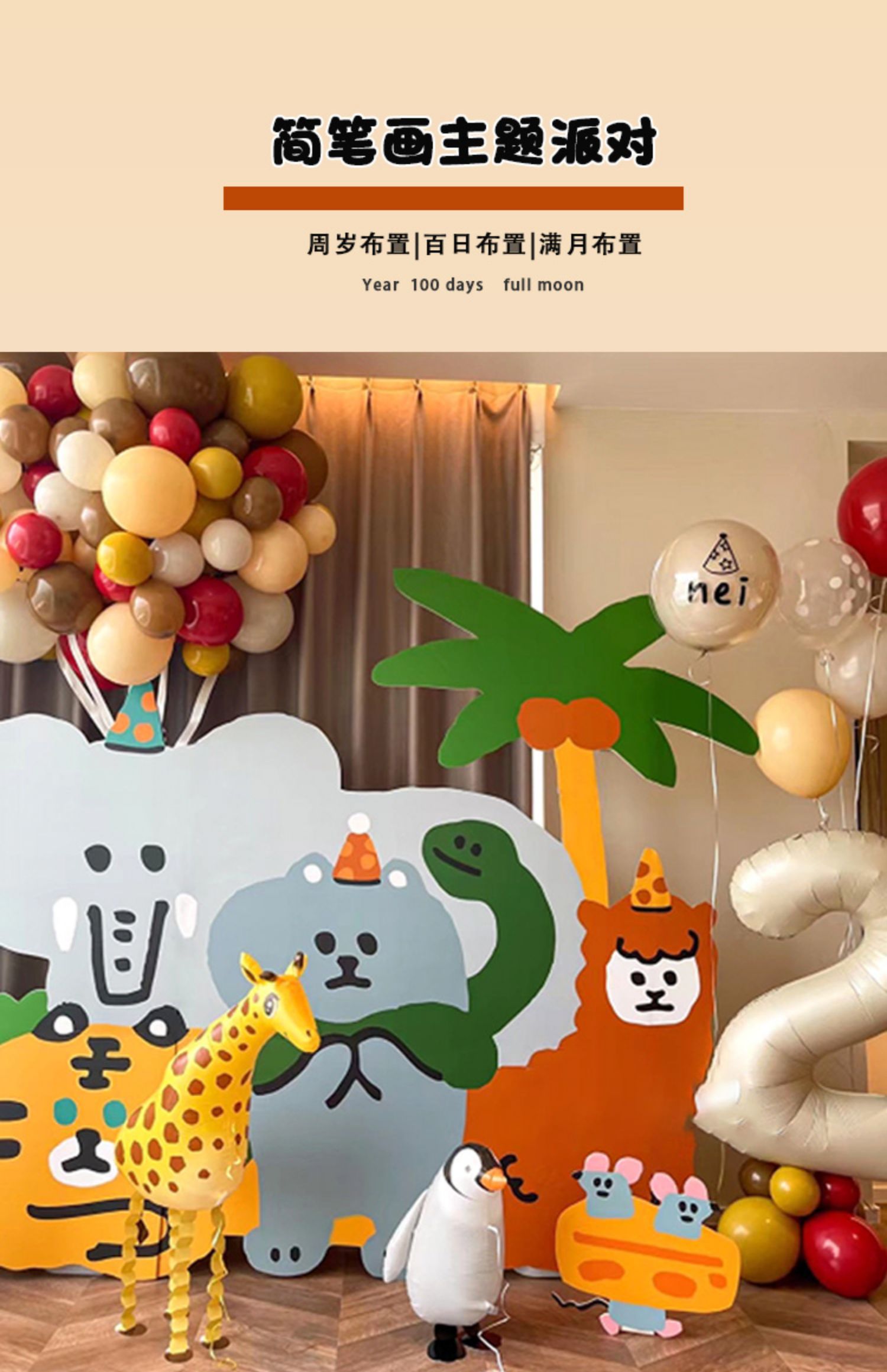 卡通動物男女寶寶周歲生日布置裝飾背景墻滿月百日宴布置kt板定制