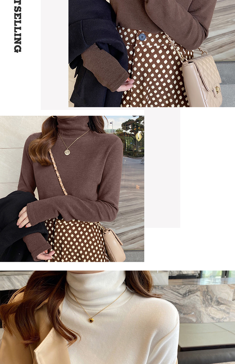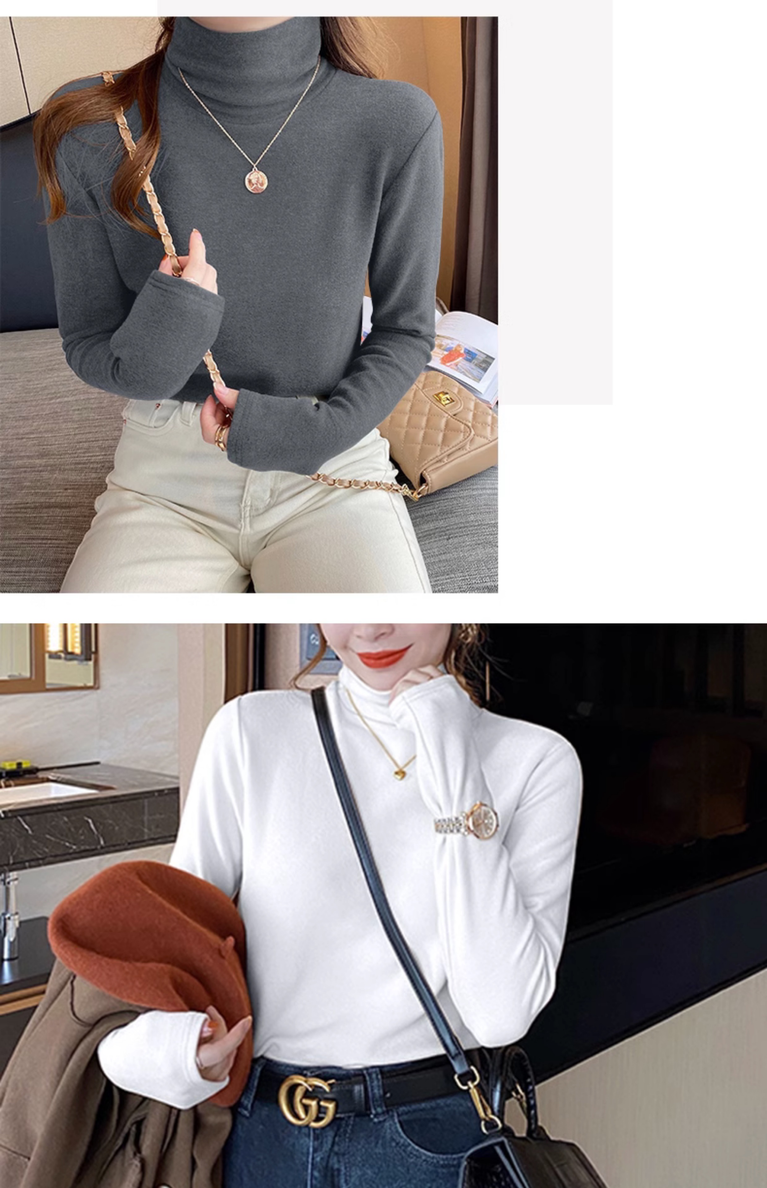 2023冬季加絨加厚半高領打底衫女保暖內搭套頭一體絨長袖中領上衣