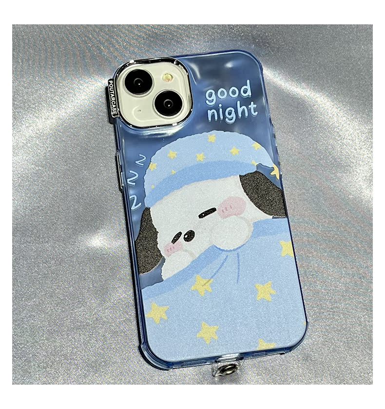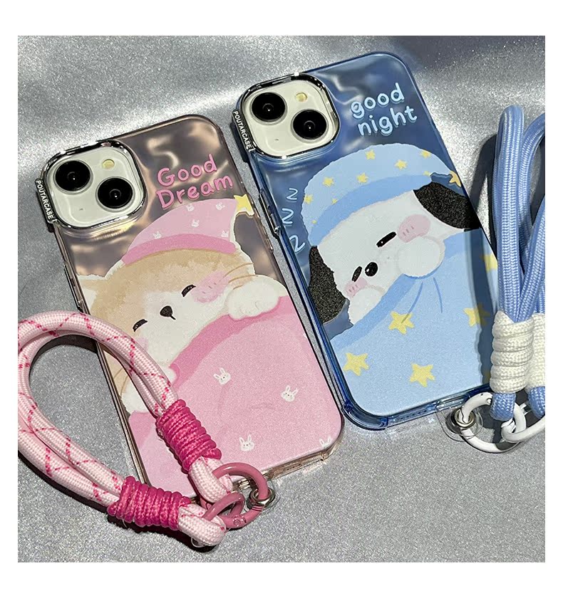 可愛卡通貓咪小狗帶掛繩適用蘋果13手機殼iphone14ProMax防摔14pro新款15pro全包11女款12情侶小眾簡約軟硅膠