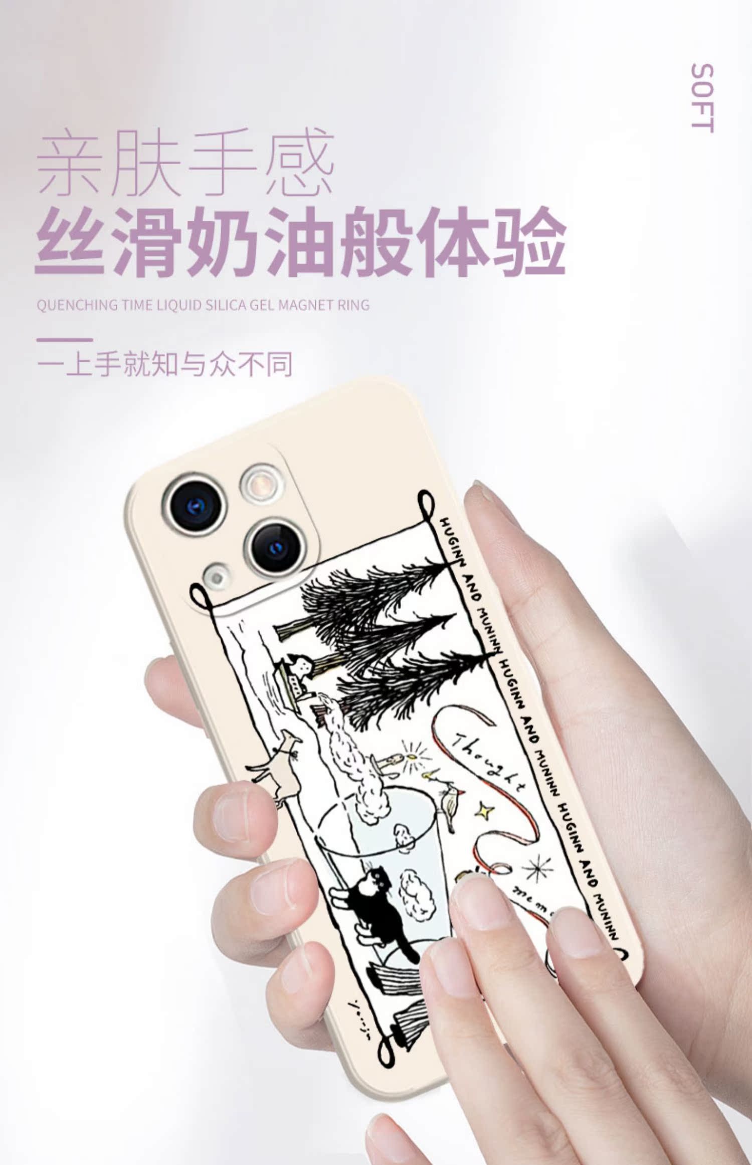 盧昱曉同款手機殼蘋果14華為mate40奶牛貓插畫iPhone15Promax周邊OPPO黑色50vivo30小米13貓咪12圖案11明星60