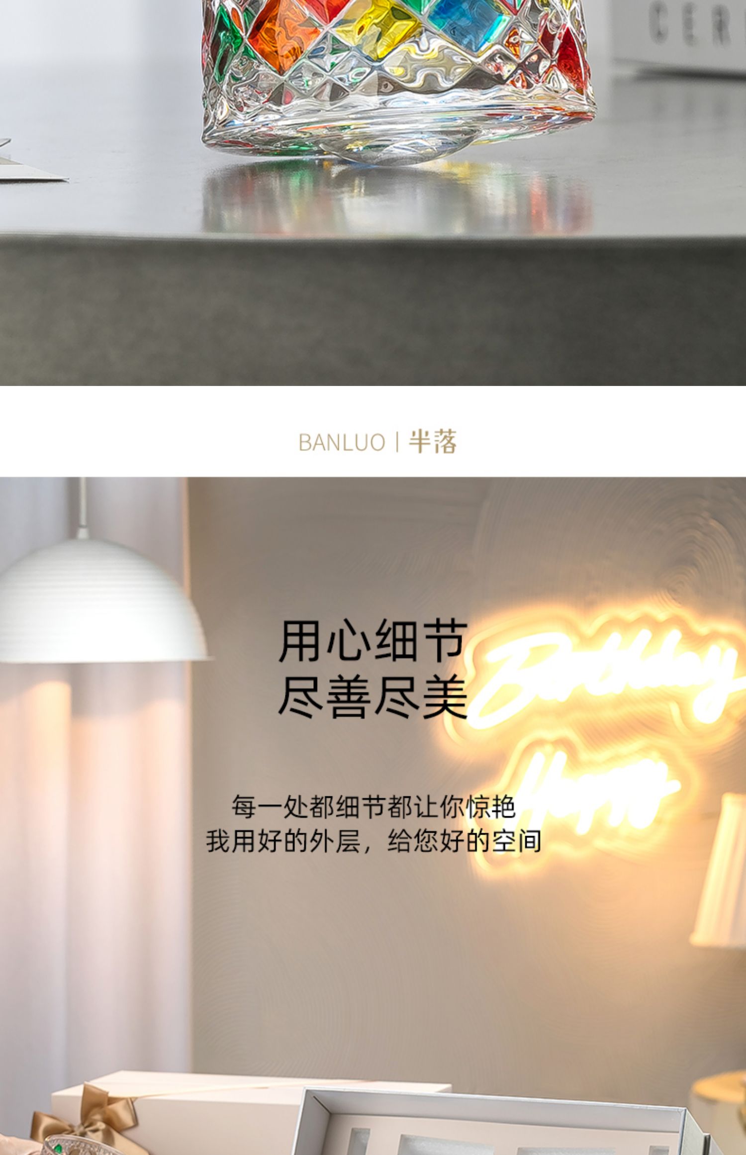 半落輕奢旋轉玻璃洋酒杯威士忌酒杯情侶對杯生日禮物新婚喬遷禮盒