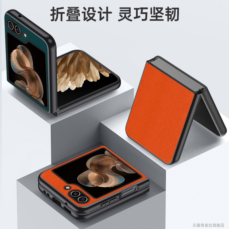 三星zflip5手機殼w24flip原創新款zflip4折疊屏超薄防摔galazyzflip3分離式w23flip全包皮紋保護套高端奢適用