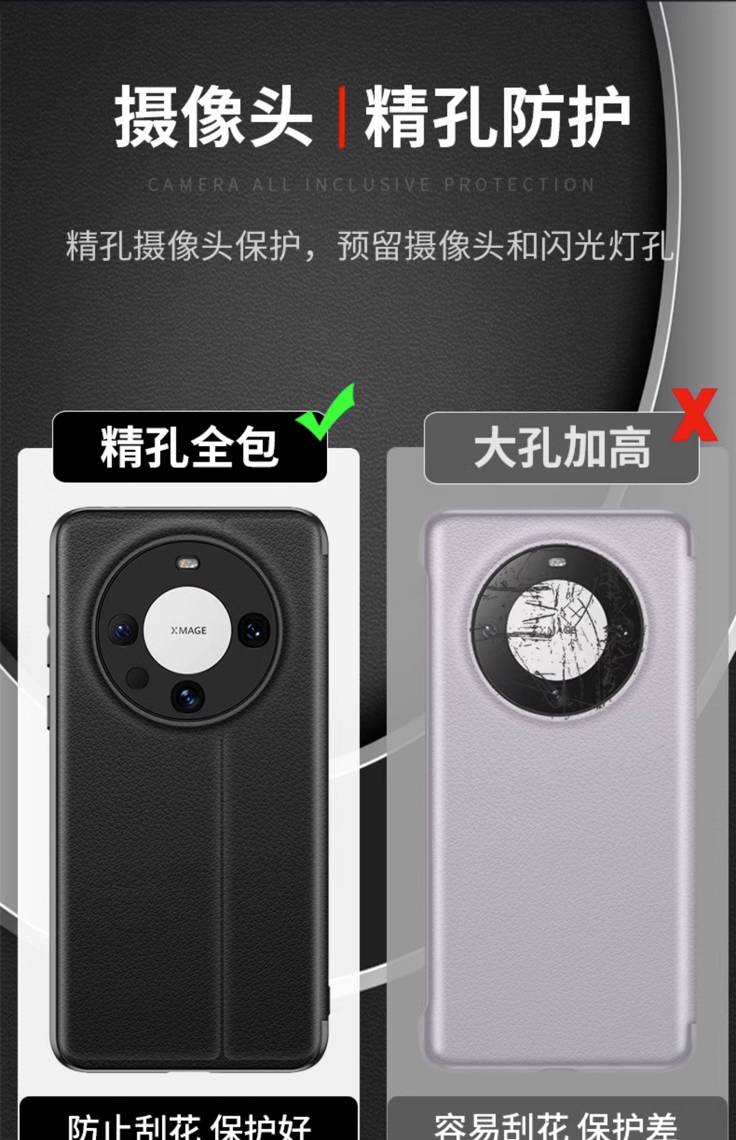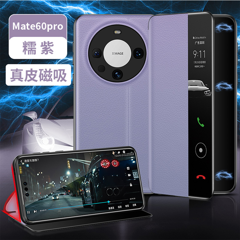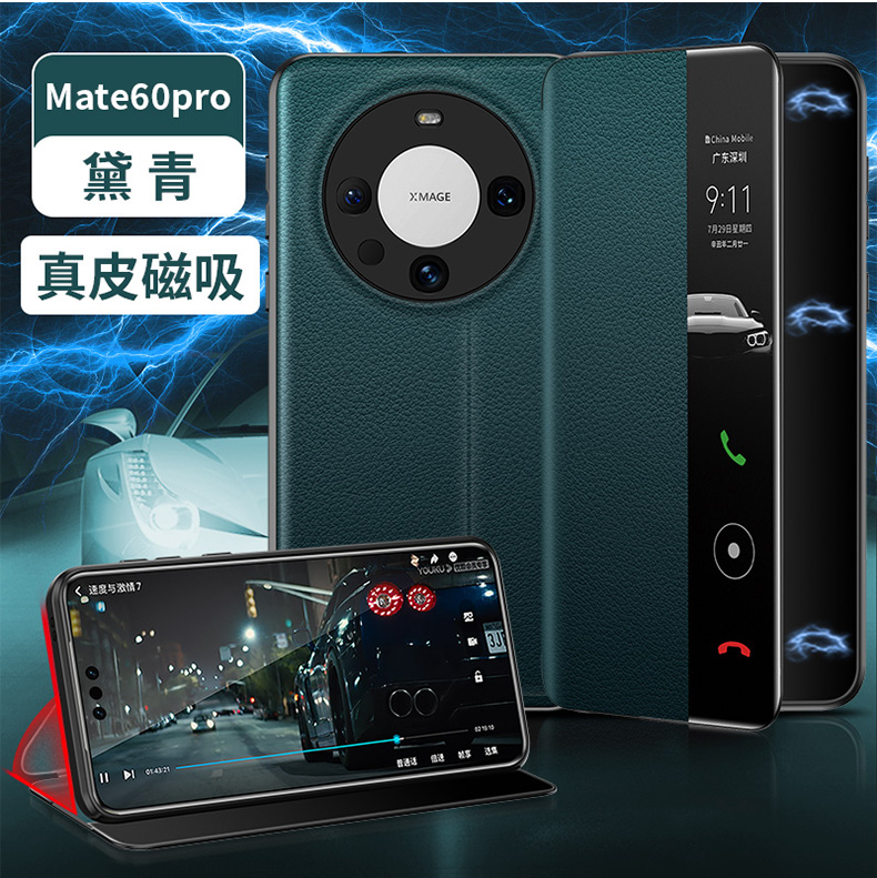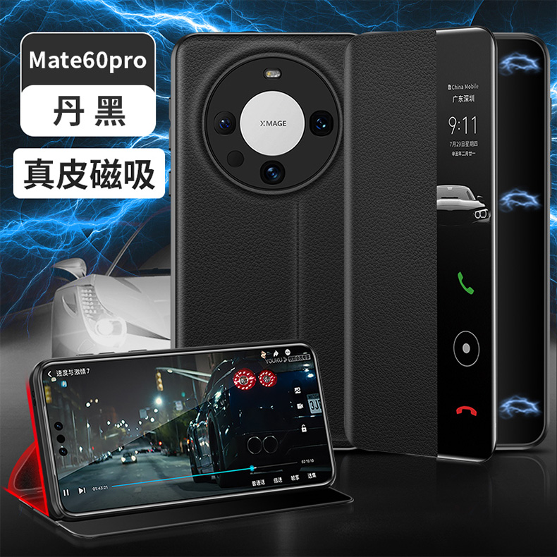 華為mate60手機殼真皮mate60pro遙遙領先翻蓋輕薄智能pro+保護套新款por系列mete防摔外殼高端5G男女款適用于