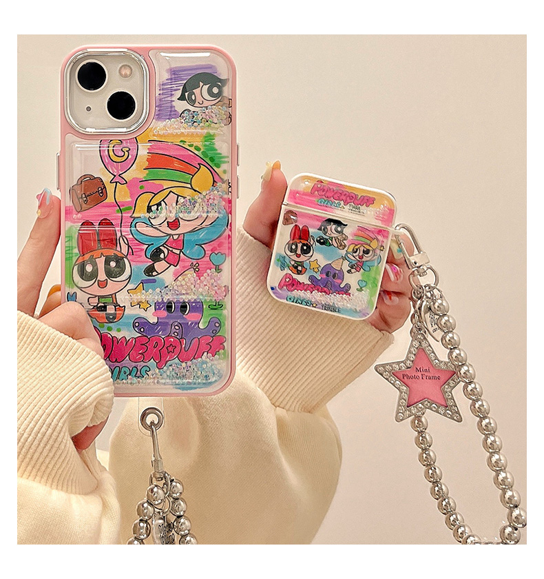 適用蘋果13手機殼卡通飛天小女警流沙氣囊殼iphone15promax創意解壓12鏈條11女14pro新款13pro軟殼防摔保護套