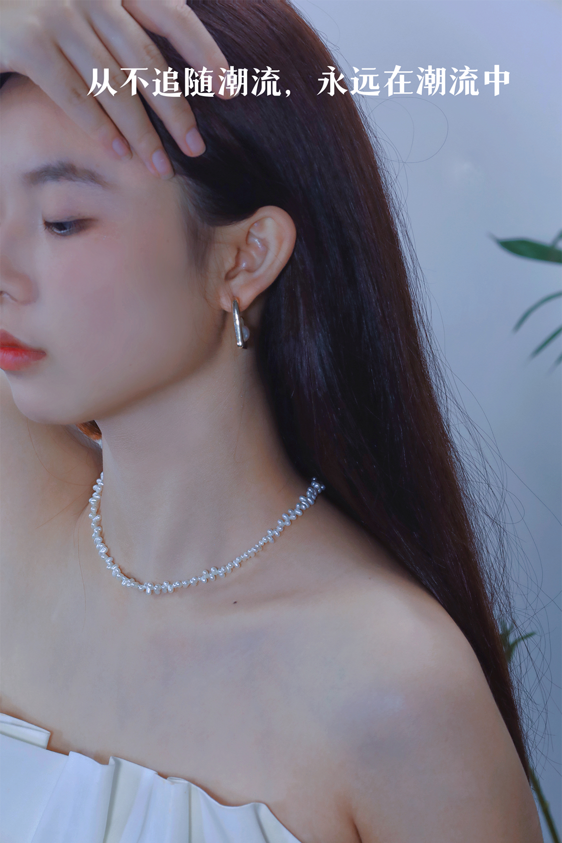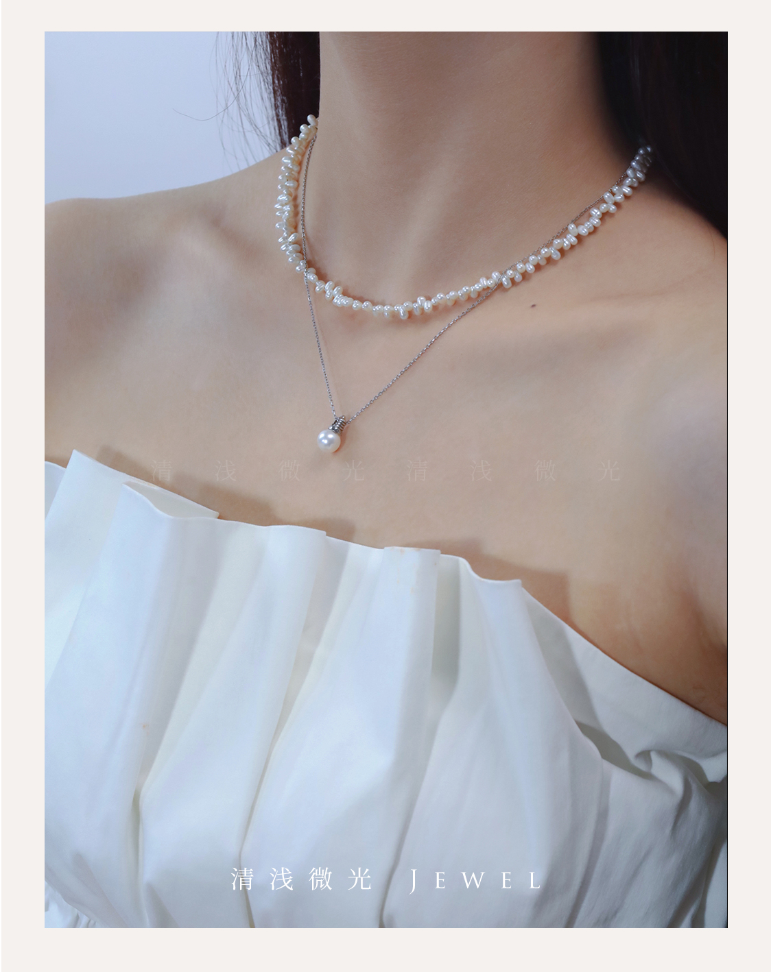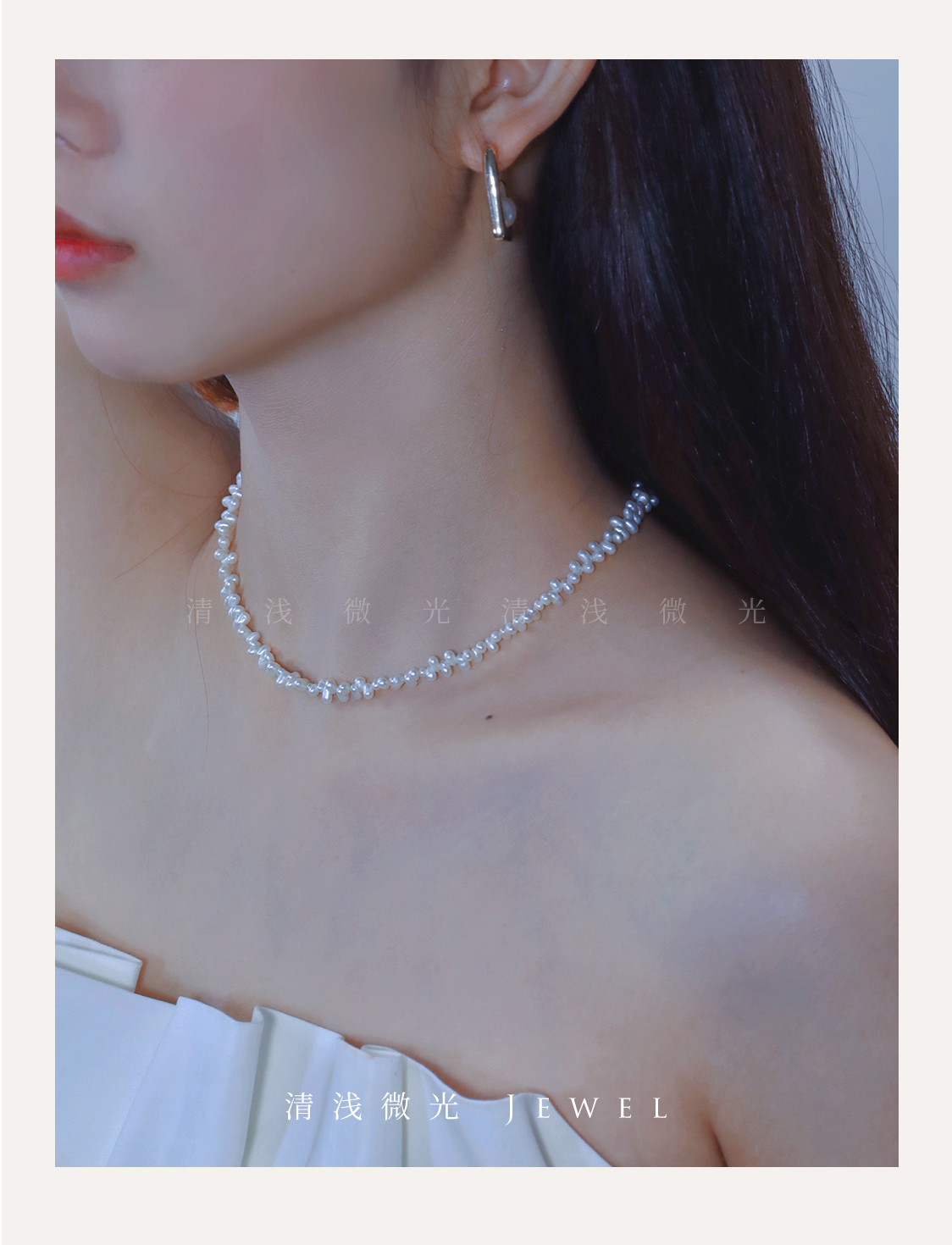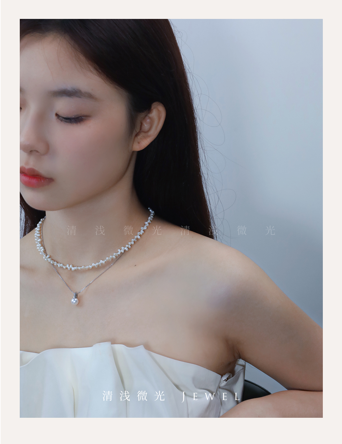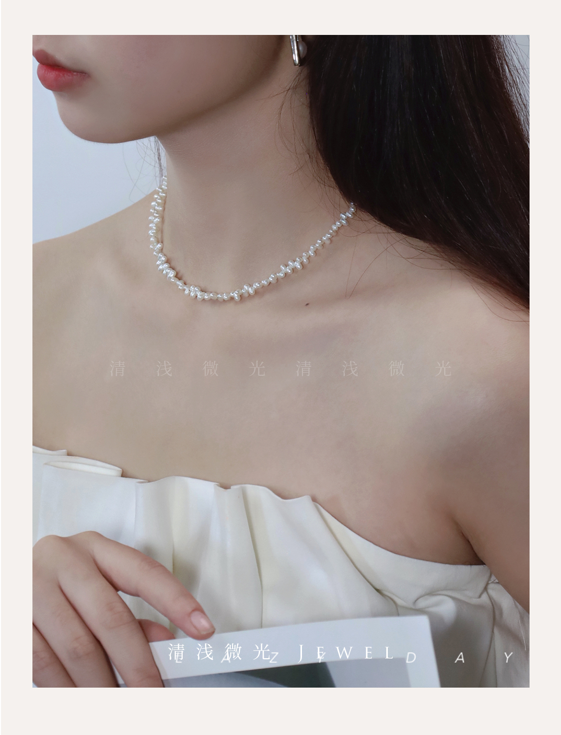 清淺微光 明星同款小眾設計純銀高級感天然淡水珍珠項鏈ins鎖骨鏈
