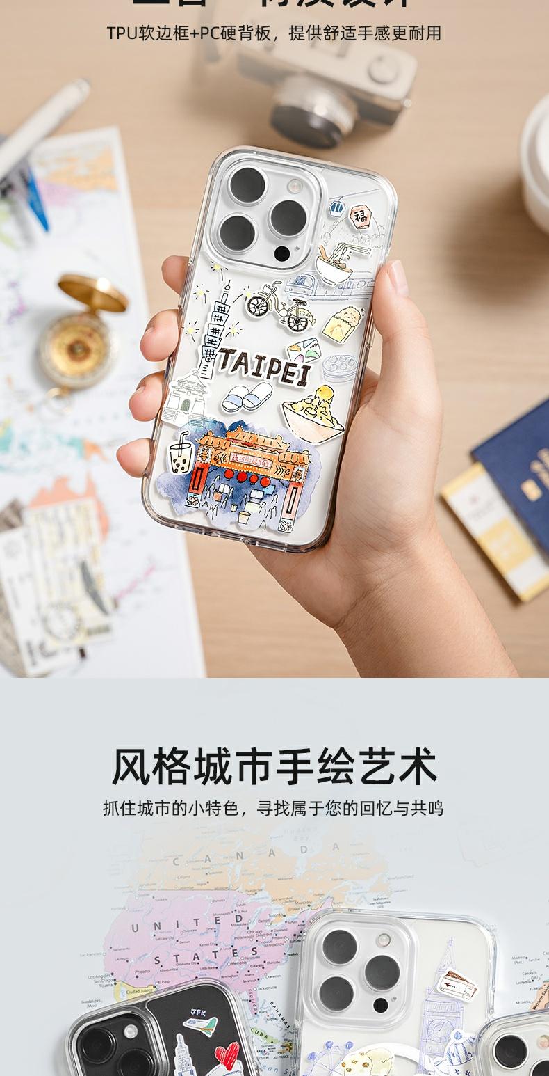 美國SwitchEasy魚骨牌適用于蘋果15Pro防摔iphone15Promax軟套透明城市圖案手機殼全包輕薄創意防摔保護殼