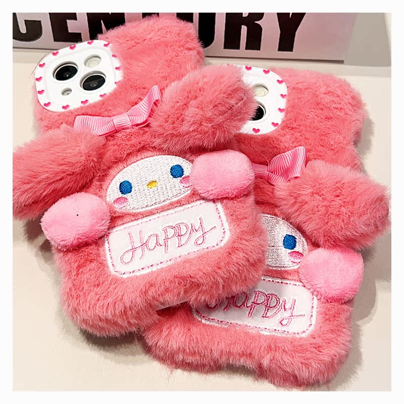 可愛粉色毛絨美樂蒂適用蘋果15promax手機殼iphone14女款15pro新款13卡通創意少女個性12硬殼pro防摔11硅膠潮