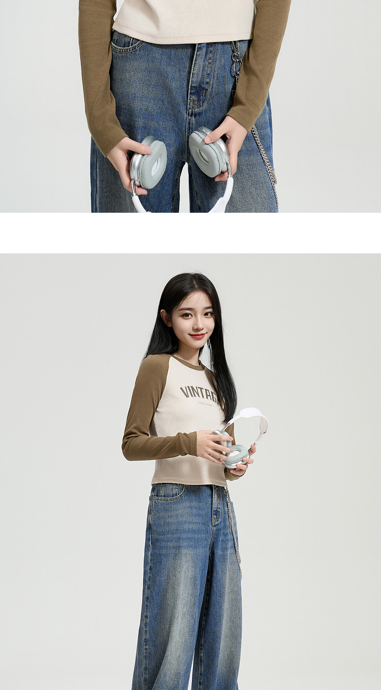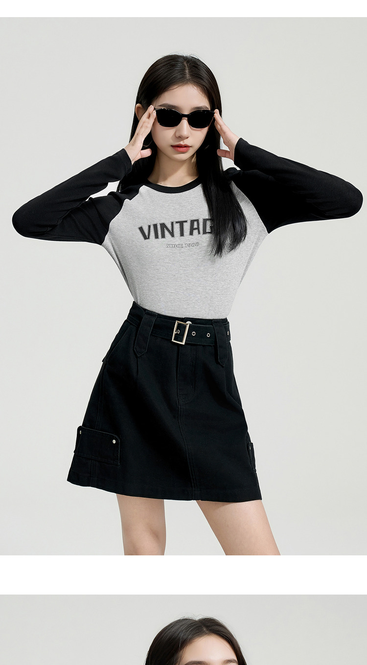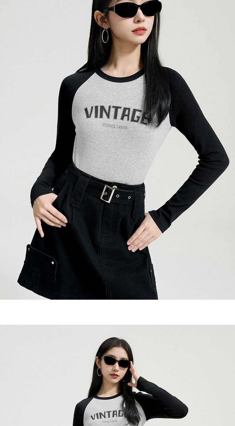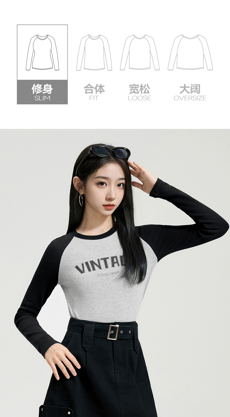 三福長袖上衣秋冬季2023新款復古印花修身插肩袖t恤上打底衫女裝