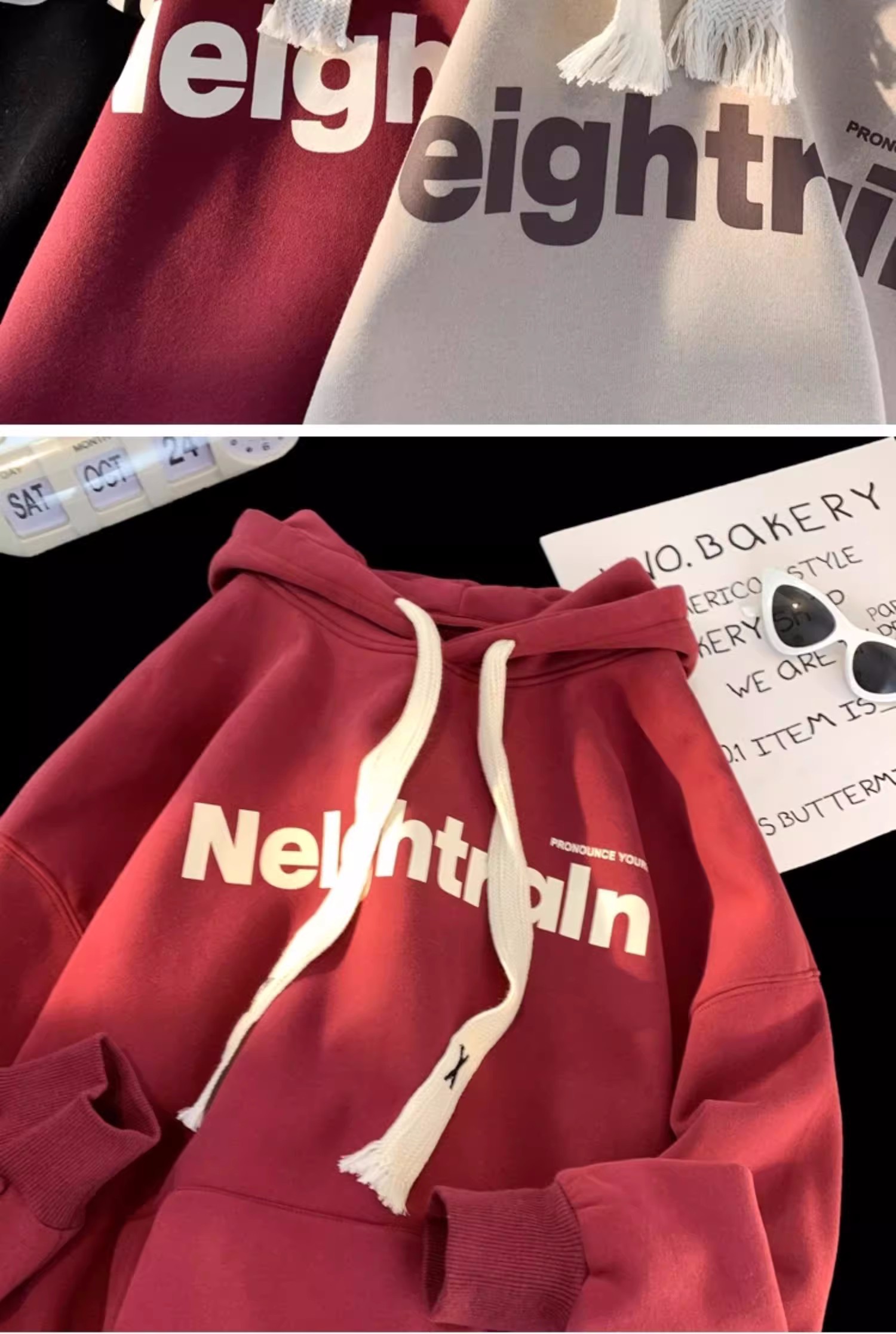 不起球酒紅色連帽衛衣女寬松vintage歐美式高級感百搭薄款外套潮