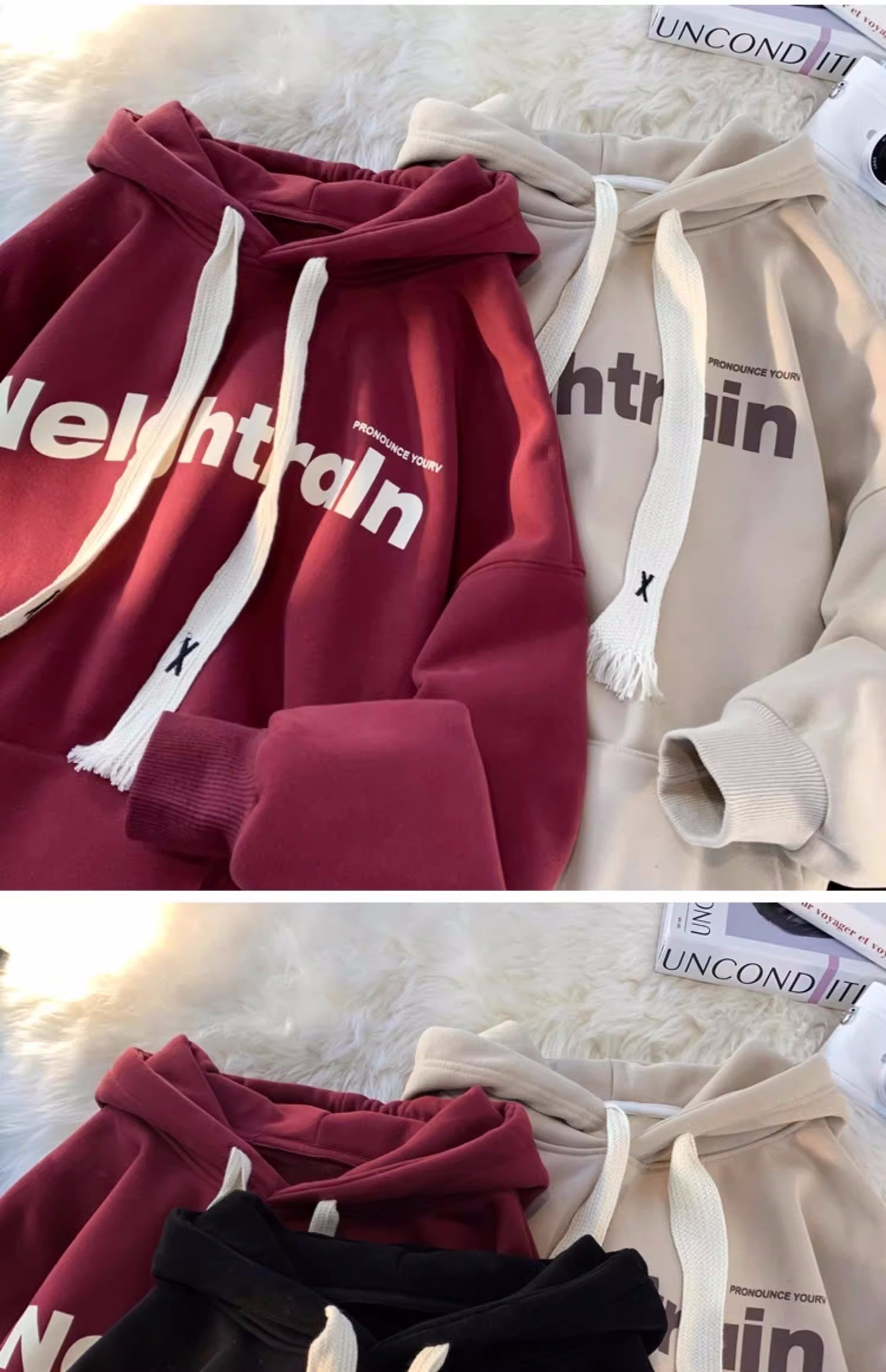 350g加絨加厚女衛衣寬松vintage高級感無帽秋冬季長袖上衣外套