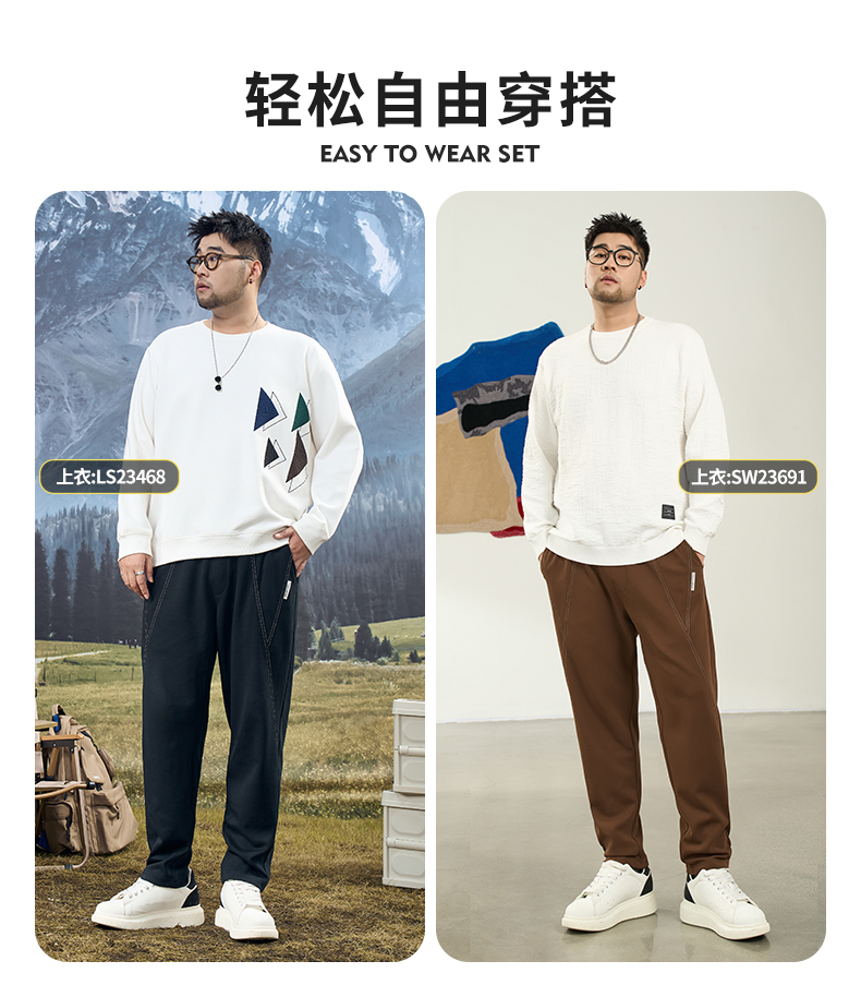 黑勁大碼休閑直筒褲男士冬季新款寬松潮流胖子加肥加大肥佬長褲