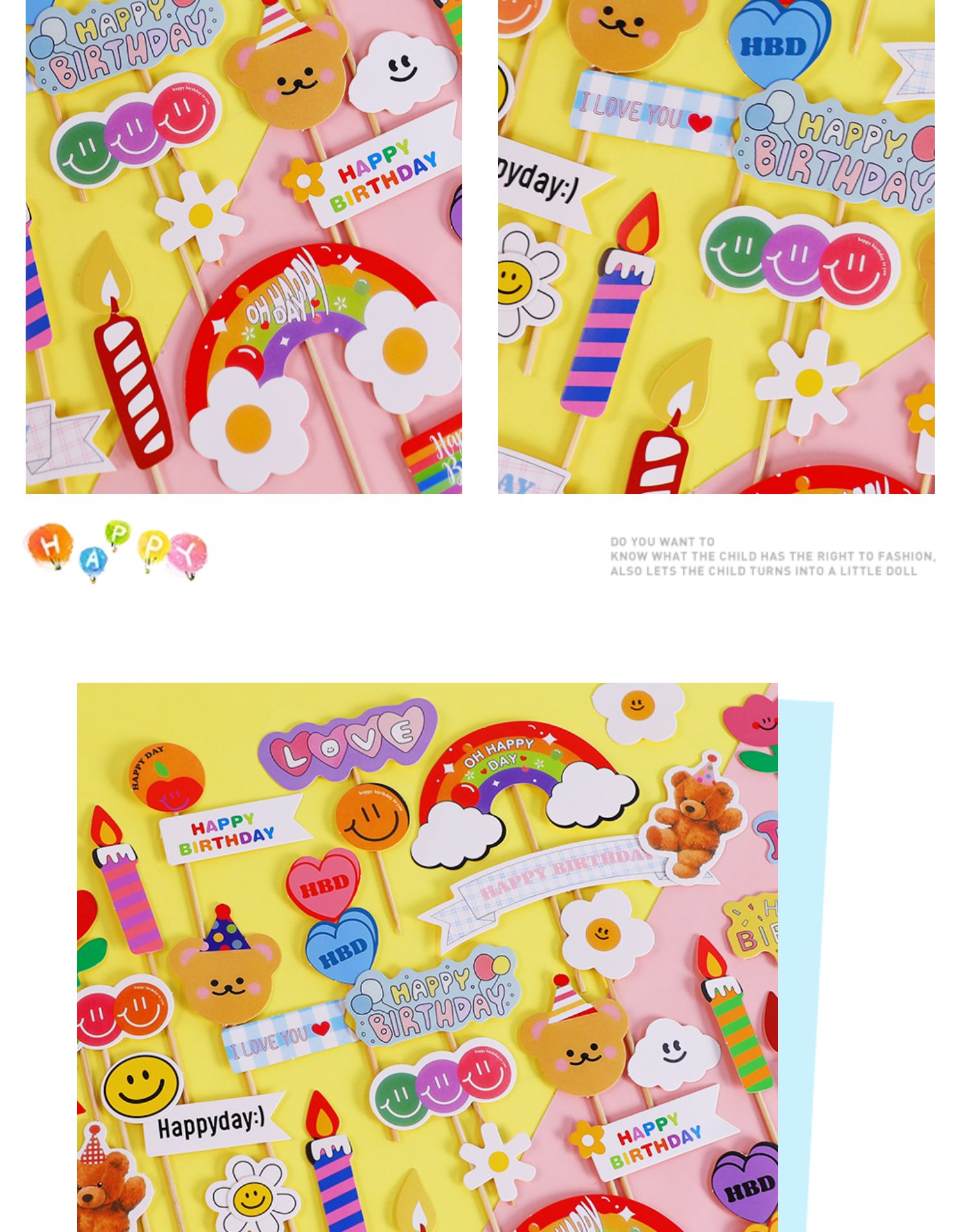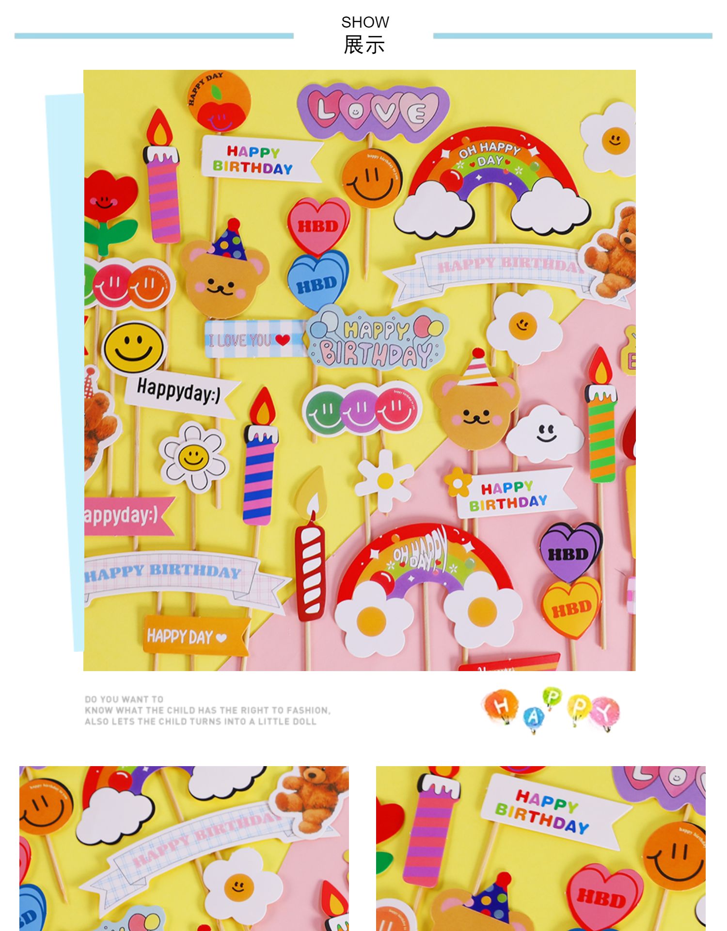 ins風蛋糕裝飾插牌韓式彩色卡通笑臉花插件兒童生日小熊彩虹插卡