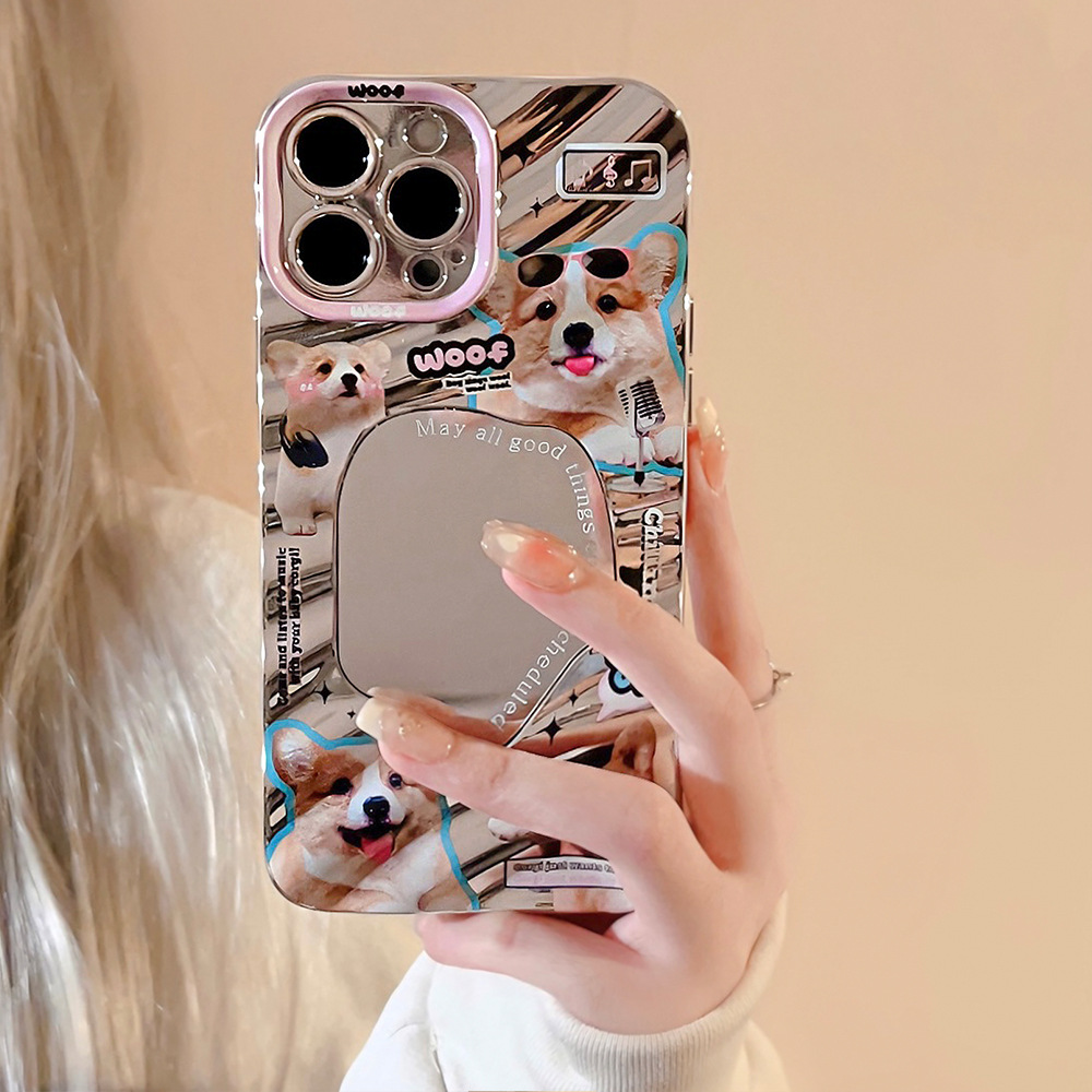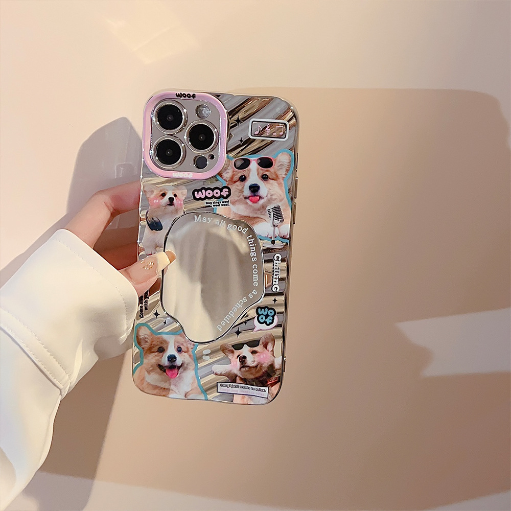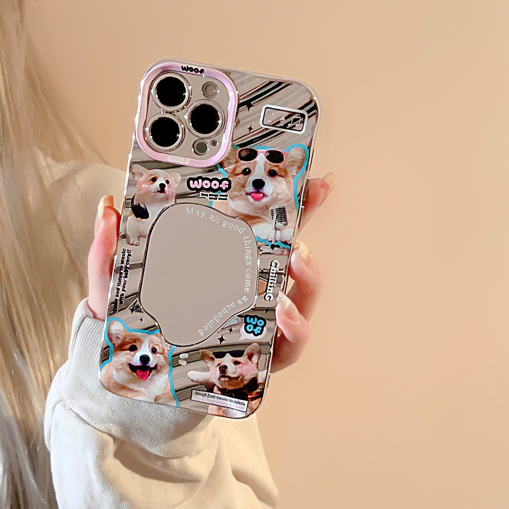 桔子貓新款電鍍銀適用iPhone15鏡面手機殼14promax可愛柯基14萌寵小狗15promax網紅12硬殼11潮牌13promax女款