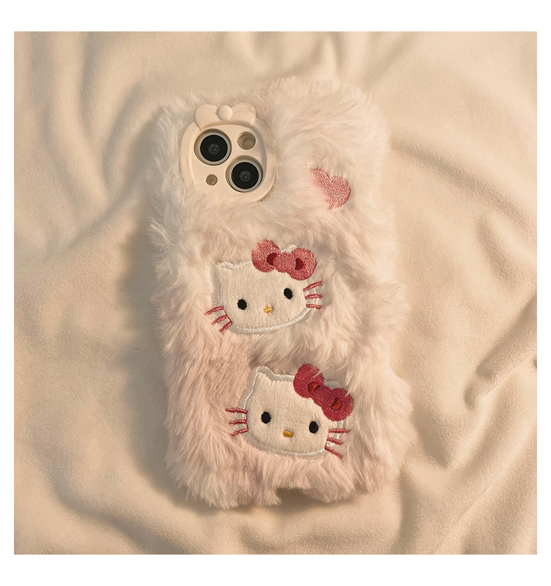 獨殼 網紅可愛HelloKitty刺繡適用蘋果14ProMax手機殼毛絨iphone13秋冬新款12小眾14pro女款11防摔15硅膠全包