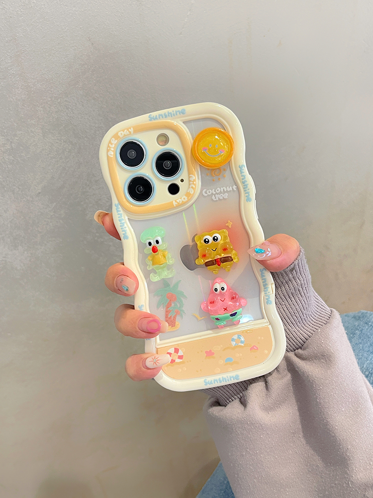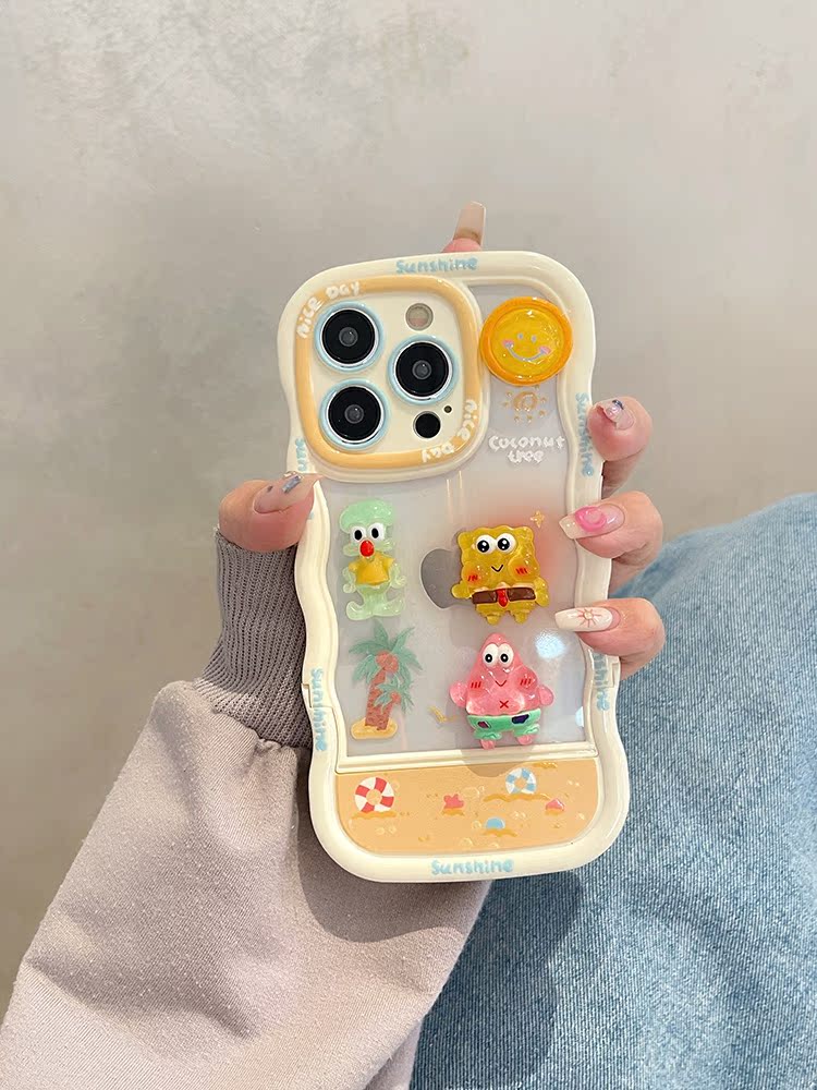 卡通立體海綿寶寶帶支架適用蘋果iphone15promax手機殼14pro新款2023女款13超火12可愛11小眾高級感max保護套