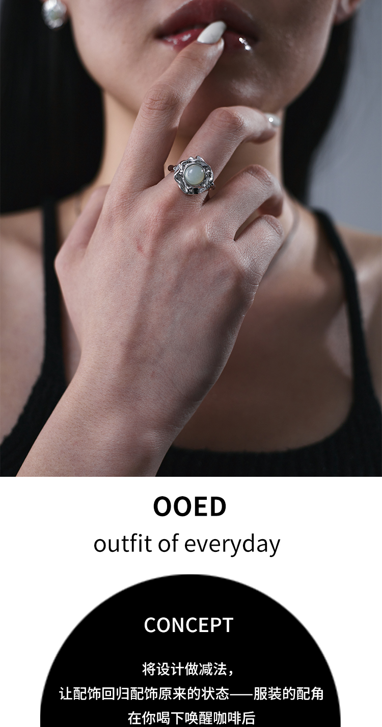 ZHAO ACAP原創設計液體金屬925銀玉石黑瑪瑙開口戒指個性時尚指環