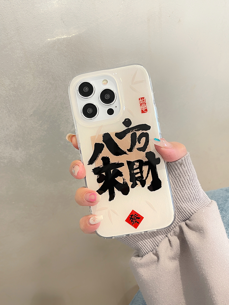 國風發財時來運轉文字適用蘋果iphone15pro手機殼13超火14promax小眾高級感12個性11網紅新款max防摔保護套男