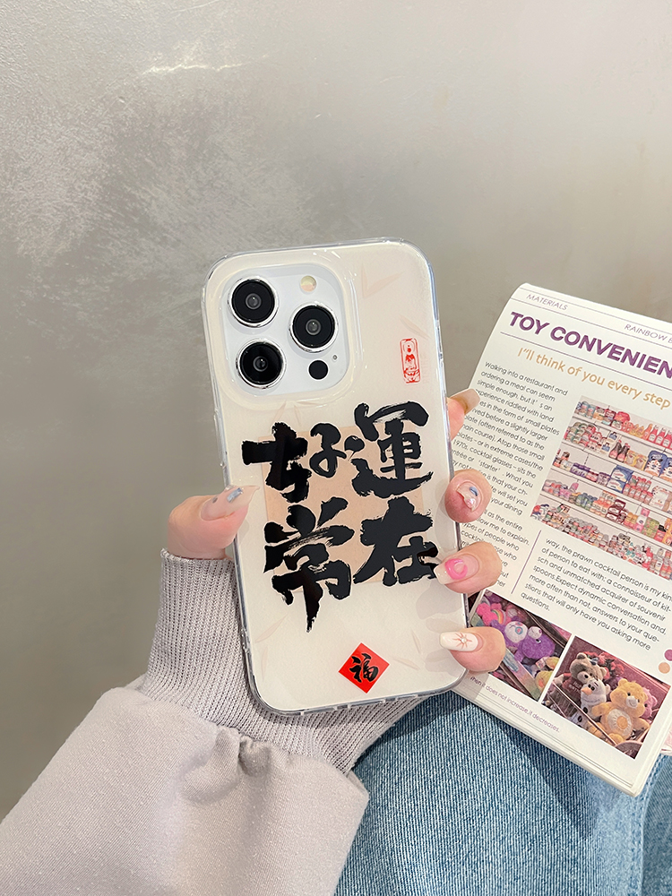 國潮文字好運常在適用蘋果iphone15promax手機殼14pro小眾高級感13超火12情侶新款11男女潮max網紅防摔保護套