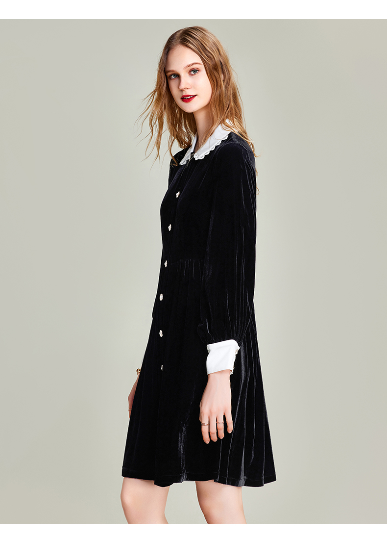 HAVVA2023秋冬新款黑色絲絨連衣裙女氣質短款寬松法式裙子Q9522