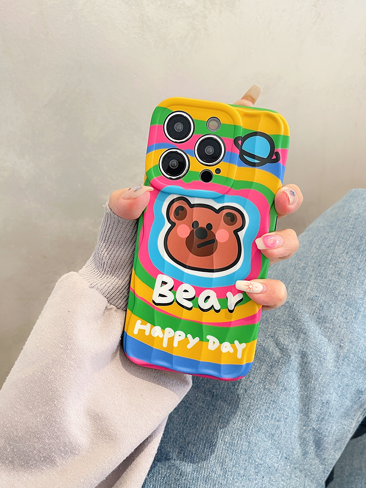 ins風可愛彩色圈圈小熊頭適用蘋果15手機殼iphone14pro硅膠13promax超火12新款2023女款11全包max保護套plus