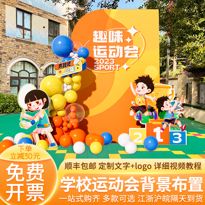 秋季小學運動會氣球拱門套裝活動氛圍主題布置學校操場景裝飾kt板