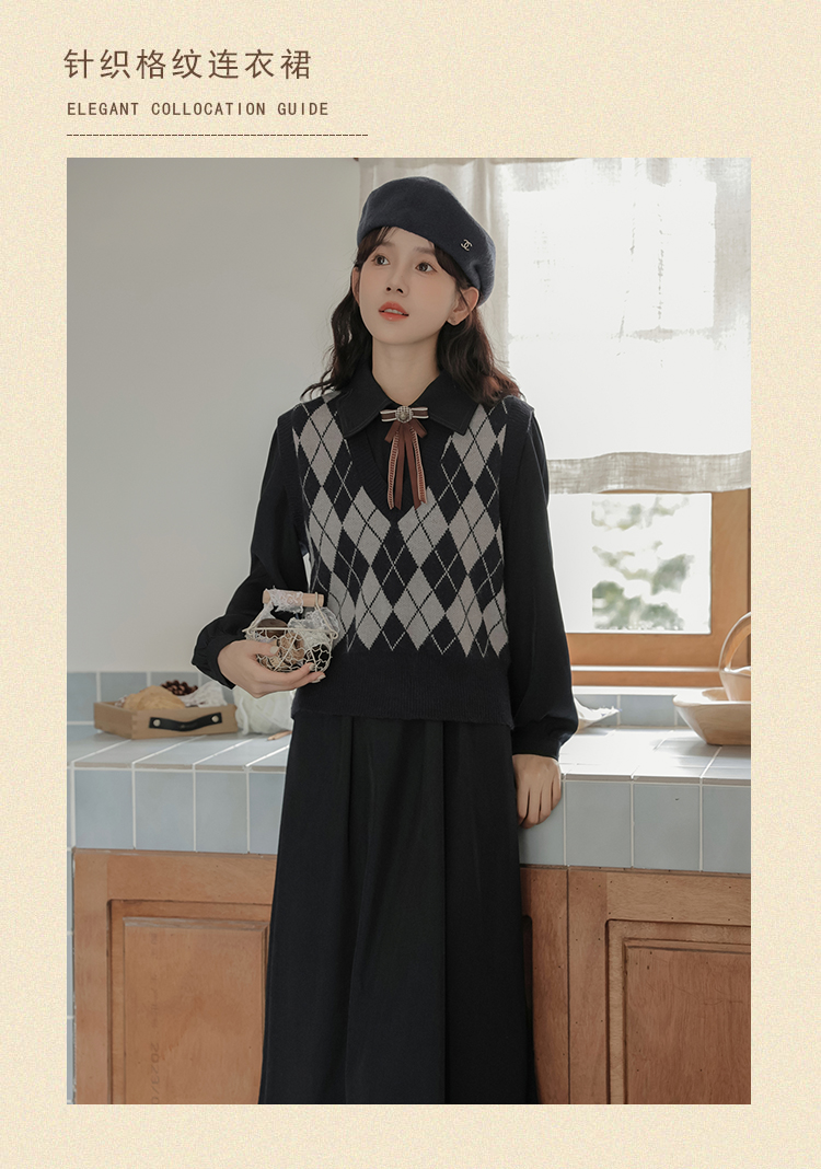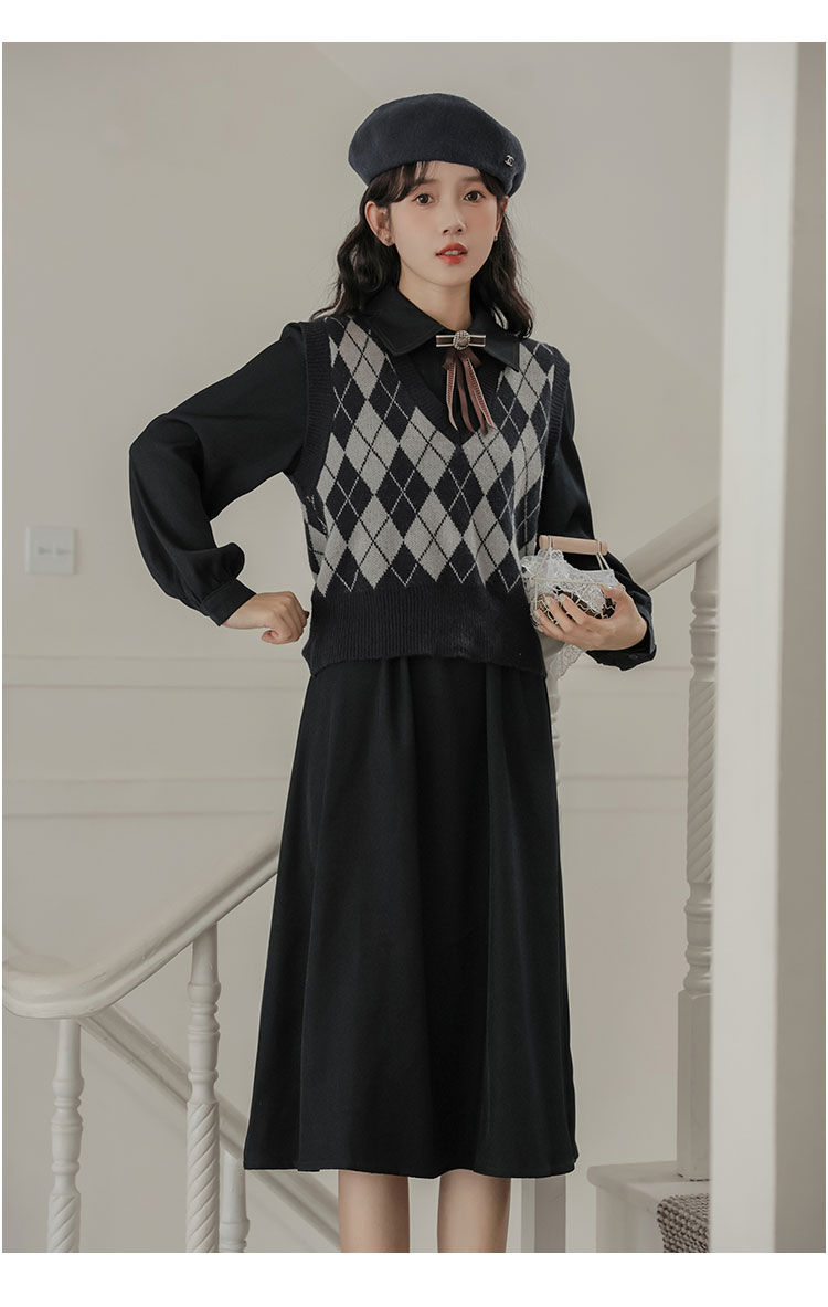 秋裝搭配一整套女2023新款學院風減齡長袖連衣裙馬甲兩件套裝裙子
