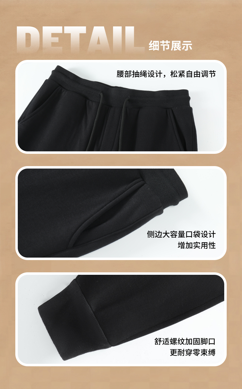 班尼路300G重磅衛褲男秋冬季雙面搖粒絨束腳美式休閑卡其運動褲子